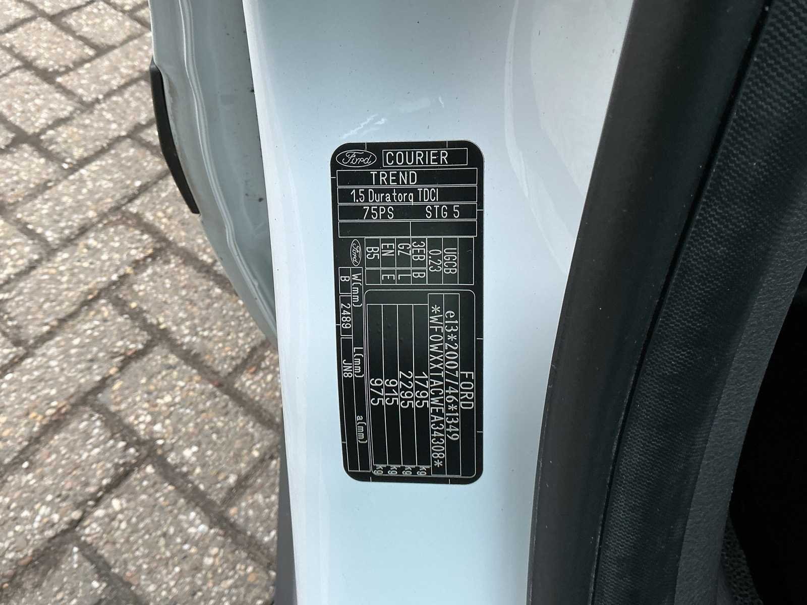 Kenteken: VL-161-K Merk: Ford Type: Transit Model: Courier Bouwjaar: 2015 Cilinderinhoud: 1499cc Vermogen (kW): 55kW Datum eerste toelating: 02-01-2015 Datum eerste toelating (NL): 02-01-2025 APK vervaldatum: 16-10-2026 Transmissie: Handbak Aantal zitplaatsen: 2 Kleur: Wit Nationaliteit documenten: Nederlands Aantal deuren: 4 Aantal sleutels: 2 Vermogen (pk): 75 Kentekenpapieren compleet?: true