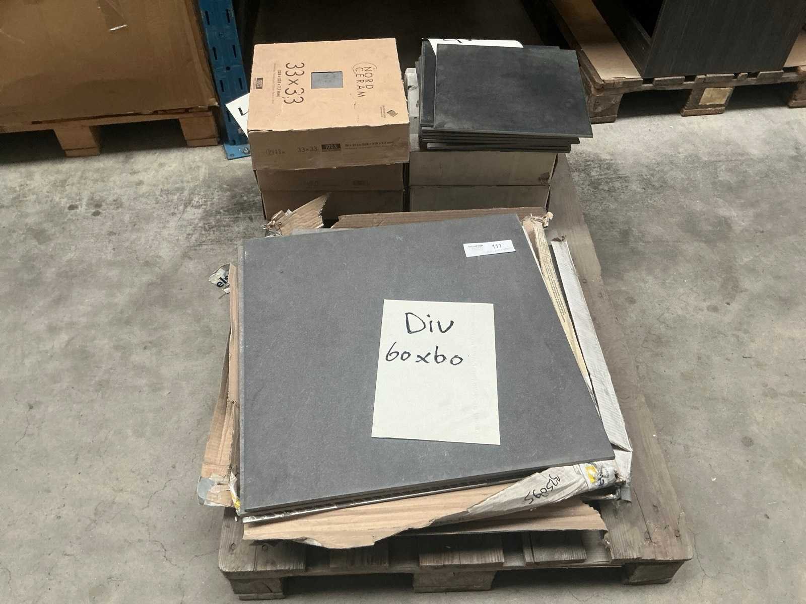Bestaande uit 2x circa 4m² vloertegels 33x33cm, en vloertegels 60x60cm.