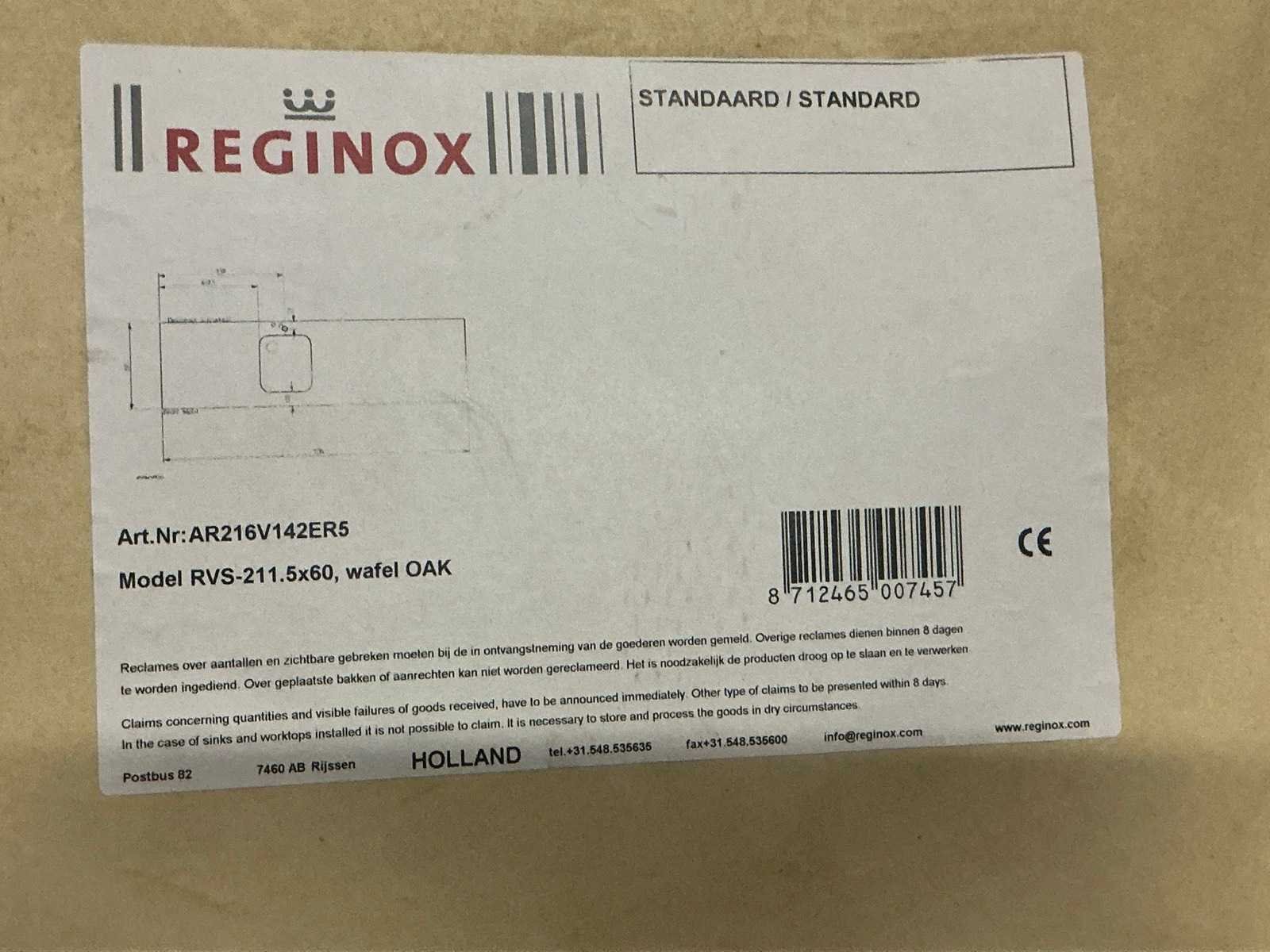 Spoelbak links Merk: Reginox Rvs: true Lengte: 211.5cm Breedte: 60cm