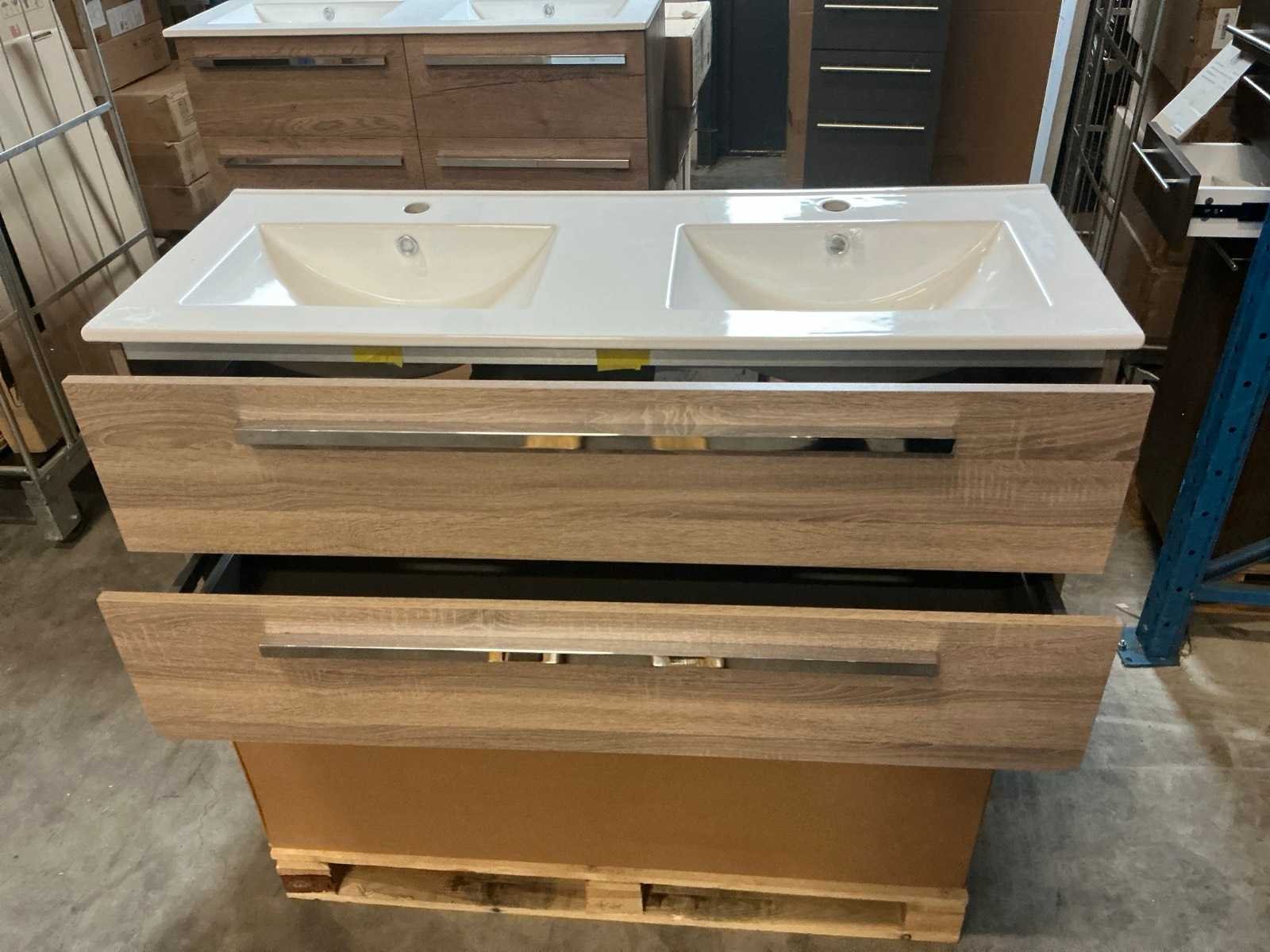 Merk: H&R design Hoogte: 52cm Breedte: 120cm Wastafel: TG Dubbel Keramiek Lades: 2 Softclose: true