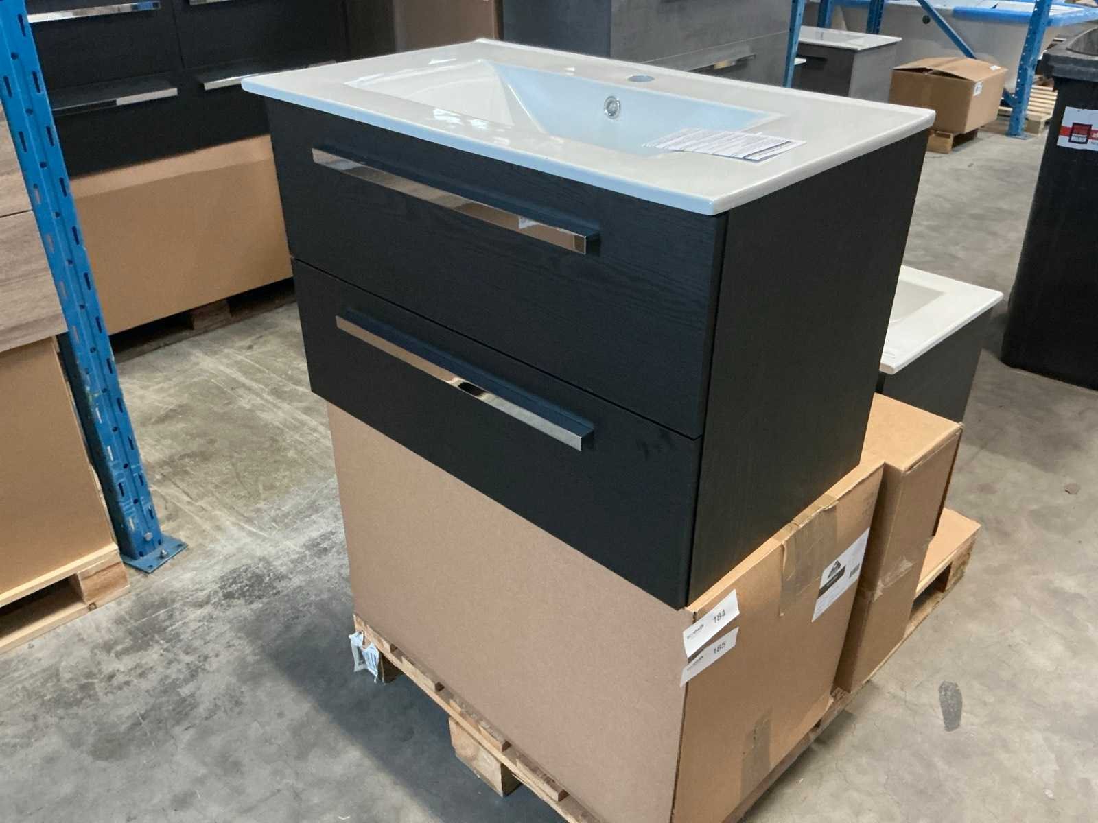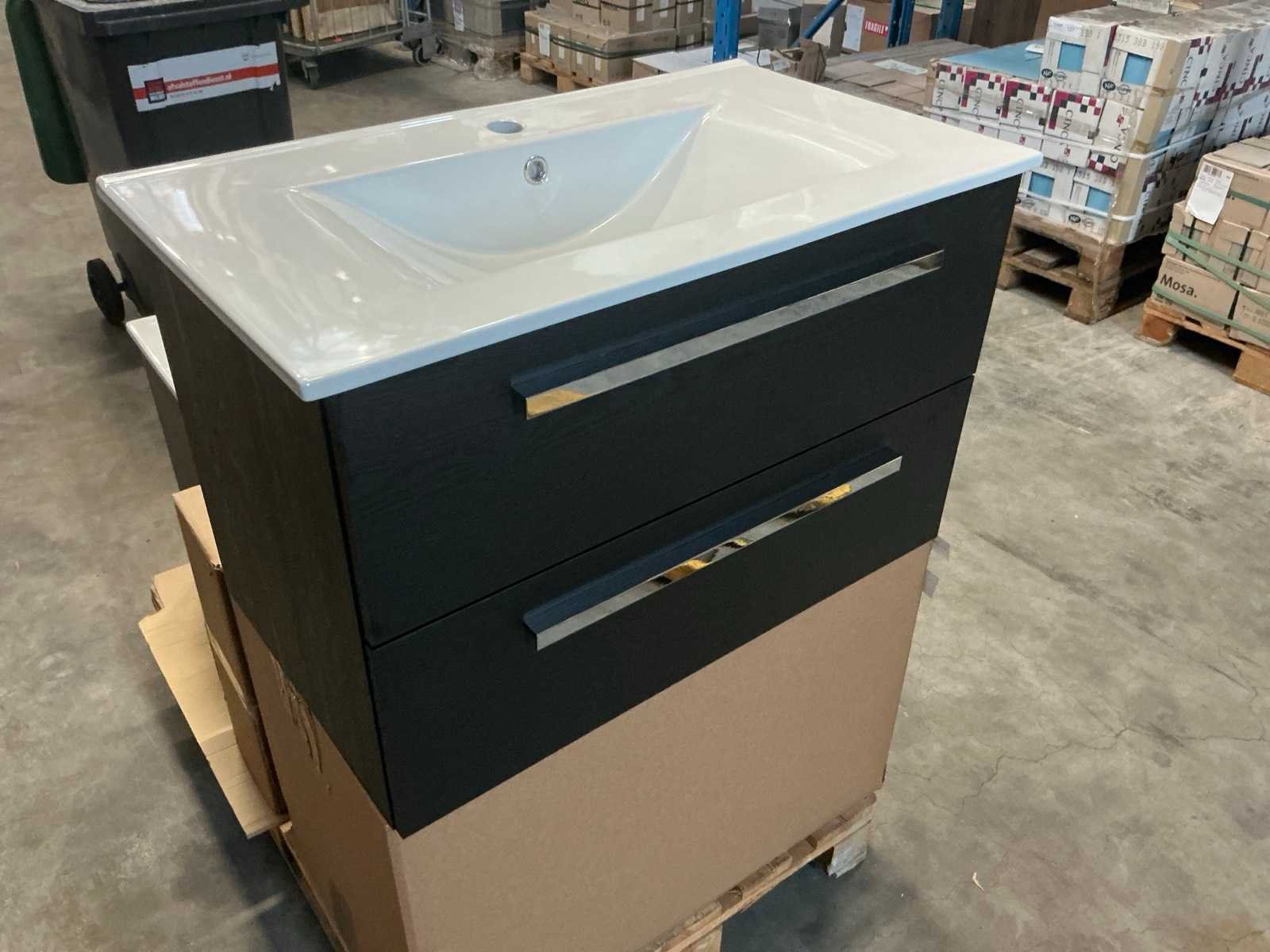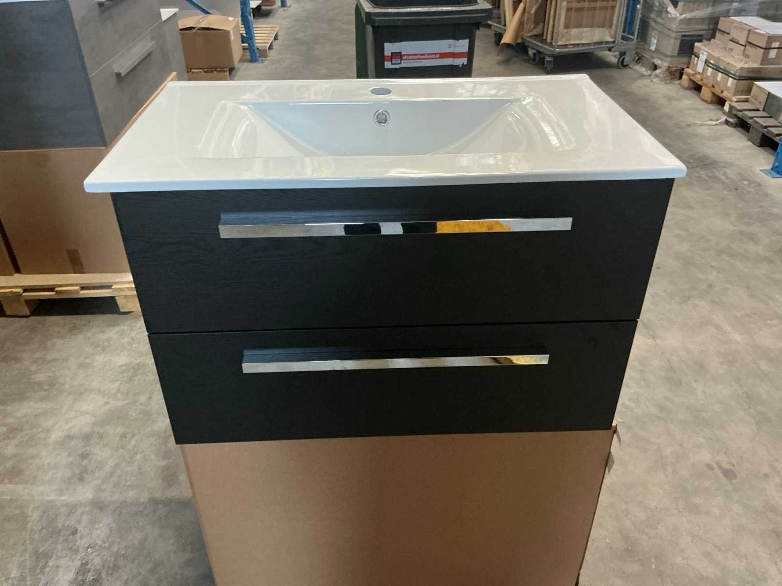 Merk: H&R design Hoogte: 51cm Lengte: 80cm Breedte: 46cm Kleur: Zwart Wastafel: Porto keramiek Lades: 2 Softclose: true