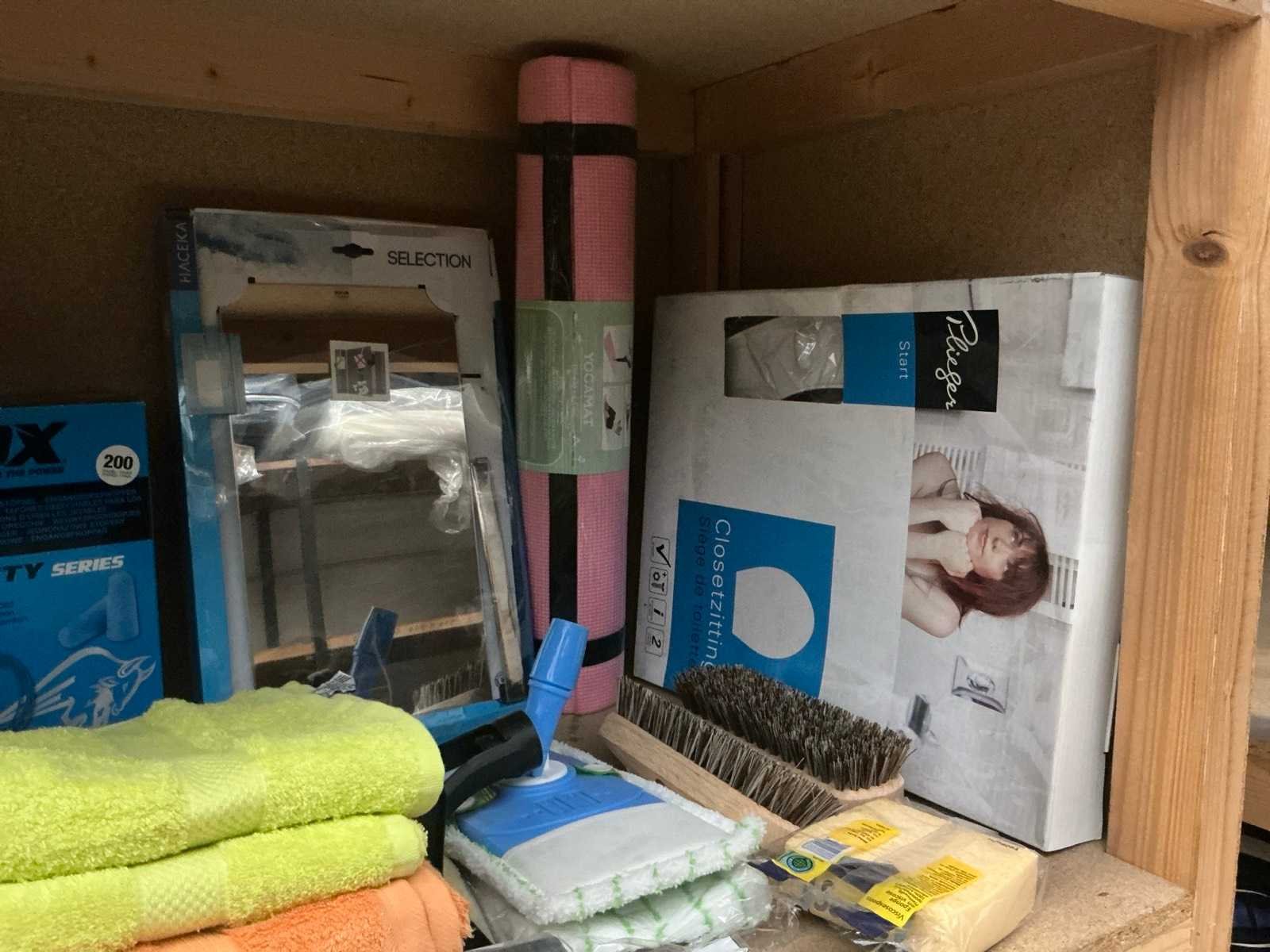 Bestaande uit: handdoeken, spiegel, sportmat, toiletbril, doucheslang, etc.