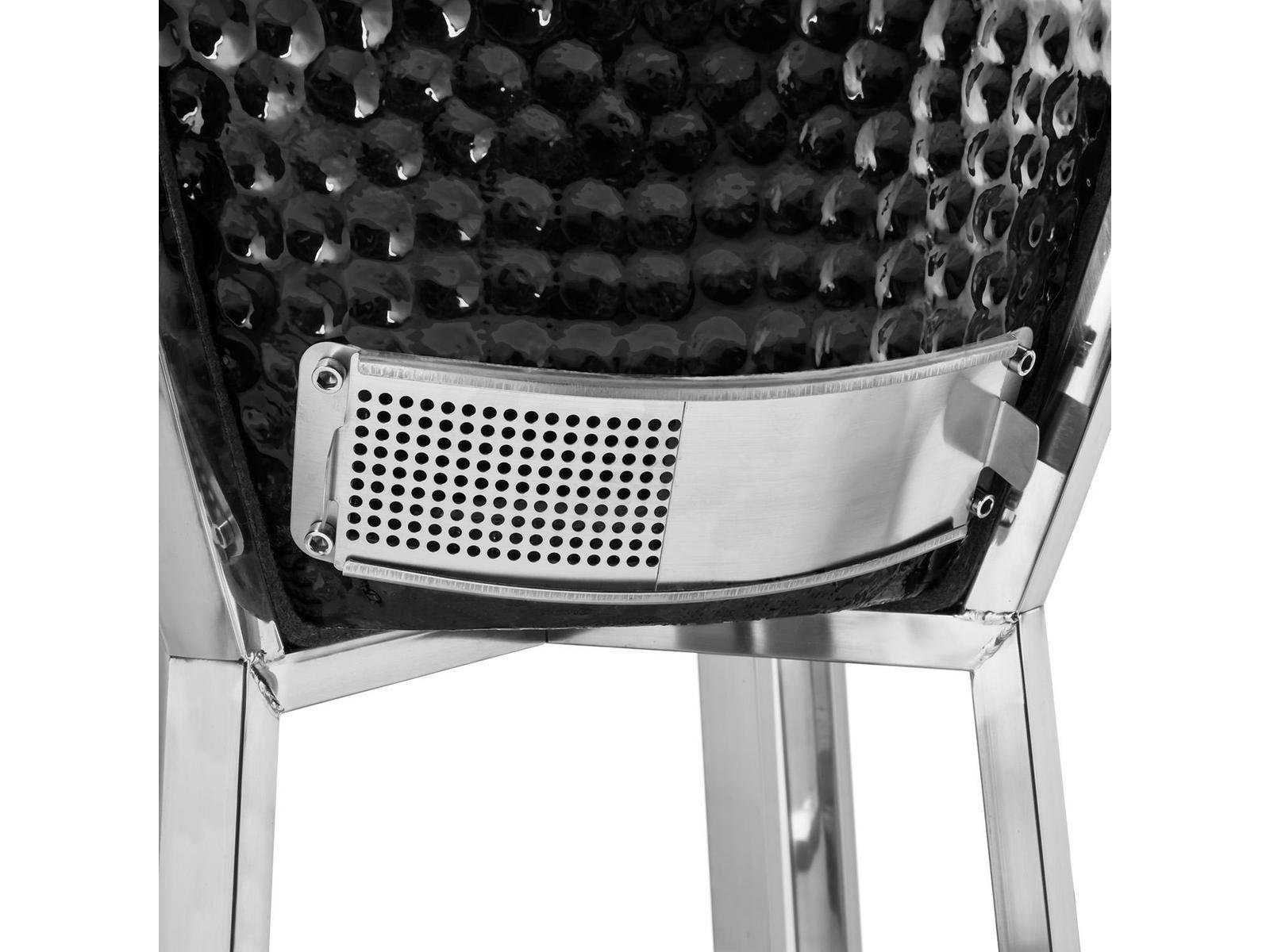 Kenmerken: • Kleur: Zwart • Uitvoering 23.5”; Diameter grilloppervlak 52 cm. • Hoogwaardig geglazuurd industrieel keramiek, welke bestand is tot temperaturen van zo’n 1.000 graden Celsius. • Dankzij de keramische schaal en gecontroleerde luchtstroom wordt het vlees of ander gerecht sappiger en malser dan in welke andere stalen barbecue ook ! • Vanwege het ventilatierooster aan de onderzijde i.c.m. met de zgn. margrietschijf aan de bovenzijde is de temperatuur uitermate goed te controleren en in te regelen. • 23.5” uitvoering standaard uitgevoerd met degelijk RVS verrijdbaar onderstel. • Incl. twee afneembare en inklapbare zijplateaus en verrijdbaar degelijk RVS onderstel v.z.v. metalen wielen met rem-inrichting • Middels de temperatuur meter op het deksel is de temperatuur goed te volgen • Standaard geleverd incl. Patton Bluetooth Smart thermometer (incl. 1 sonde) geïntegreerd in het werkblad De Patton Bluetotth Smart I thermometer maakt middels Bluetooth contact met je smartphone of tablet. Download de gratis app uit de Appstore of Google Play Store en koppel deze aan je Patton Bluetooth Smart Thermometer, waarna je de temperatuur van je gerecht op afstand kunt volgen. Technische informatie: • Bluetooth Smart (4.0) • Geschikt voor iPad (mini, 3E generatie en nieuwer) • Geschikt voor iPhone 4S en nieuwer, iPod Touch 5e generatie en nieuwer • Geschikt voor veel Android Smart devices met Bluetooth 4.0 / 4.3 en nieuwer • Bereik tot ca. 10 mtr. • 1 x CR2032 batterij (inclusief) • Incl. demontabele 1.10 mtr. kabel incl. 10 cm. RVS sonde • Temperatuur bereik: -30 tot +300 Graden Celsius • Touchscreen display incl. backlight • Camera functie waarmee je jouw mooiste gerechten of wel (BBQ) gezelligheid kunt fotograferen, en deze middels de social media share-functie zou kunnen delen.. • Bediening middels “SmartThermo” app via jouw (mobile) device naar keuze Merk: Patton Model: 55CCE310 Product type: 23,5 inch met verrijdbaar onderstel Kleur: zwart Gewicht: 90kg Materiaal: Keramiek