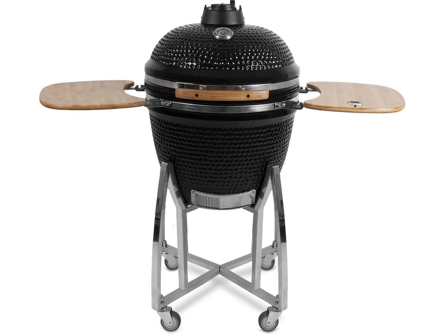 Kenmerken: • Kleur: groen • Uitvoering 23.5”; Diameter grilloppervlak 52 cm. • Hoogwaardig geglazuurd industrieel keramiek, welke bestand is tot temperaturen van zo’n 1.000 graden Celsius. • Dankzij de keramische schaal en gecontroleerde luchtstroom wordt het vlees of ander gerecht sappiger en malser dan in welke andere stalen barbecue ook ! • Vanwege het ventilatierooster aan de onderzijde i.c.m. met de zgn. margrietschijf aan de bovenzijde is de temperatuur uitermate goed te controleren en in te regelen. • 23.5” uitvoering standaard uitgevoerd met degelijk RVS verrijdbaar onderstel. • Incl. twee afneembare en inklapbare zijplateaus en verrijdbaar degelijk RVS onderstel v.z.v. metalen wielen met rem-inrichting • Middels de temperatuur meter op het deksel is de temperatuur goed te volgen • Standaard geleverd incl. Patton Bluetooth Smart thermometer (incl. 1 sonde) geïntegreerd in het werkblad De Patton Bluetotth Smart I thermometer maakt middels Bluetooth contact met je smartphone of tablet. Download de gratis app uit de Appstore of Google Play Store en koppel deze aan je Patton Bluetooth Smart Thermometer, waarna je de temperatuur van je gerecht op afstand kunt volgen. Technische informatie: • Bluetooth Smart (4.0) • Geschikt voor iPad (mini, 3E generatie en nieuwer) • Geschikt voor iPhone 4S en nieuwer, iPod Touch 5e generatie en nieuwer • Geschikt voor veel Android Smart devices met Bluetooth 4.0 / 4.3 en nieuwer • Bereik tot ca. 10 mtr. • 1 x CR2032 batterij (inclusief) • Incl. demontabele 1.10 mtr. kabel incl. 10 cm. RVS sonde • Temperatuur bereik: -30 tot +300 Graden Celsius • Touchscreen display incl. backlight • Camera functie waarmee je jouw mooiste gerechten of wel (BBQ) gezelligheid kunt fotograferen, en deze middels de social media share-functie zou kunnen delen.. • Bediening middels “SmartThermo” app via jouw (mobile) device naar keuze Merk: Patton Product type: 23,5 inch met verrijdbaar onderstel Kleur: Groen Gewicht: 90kg Materiaal: Keramiek