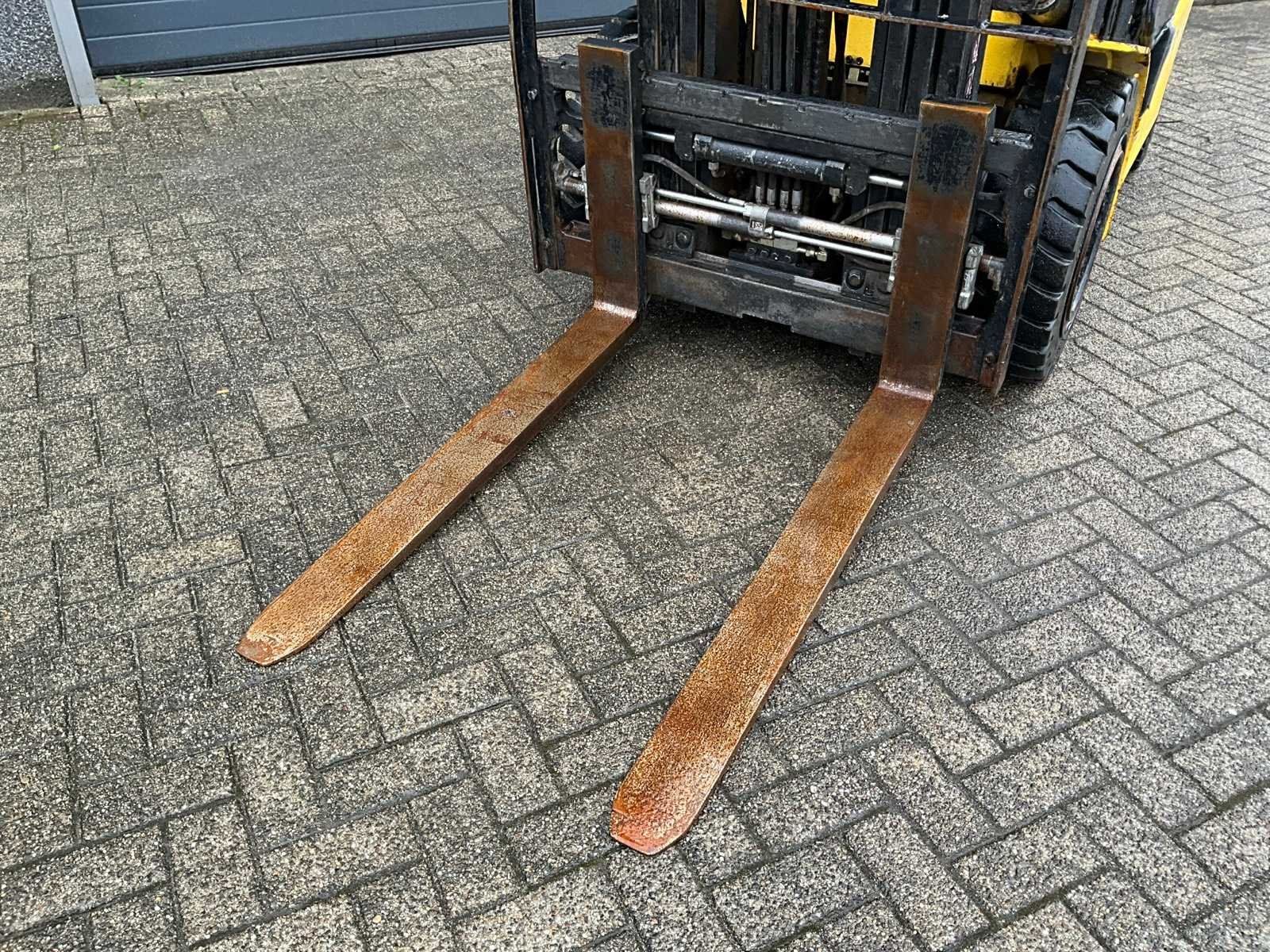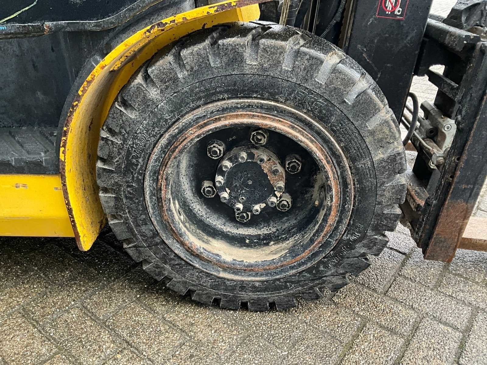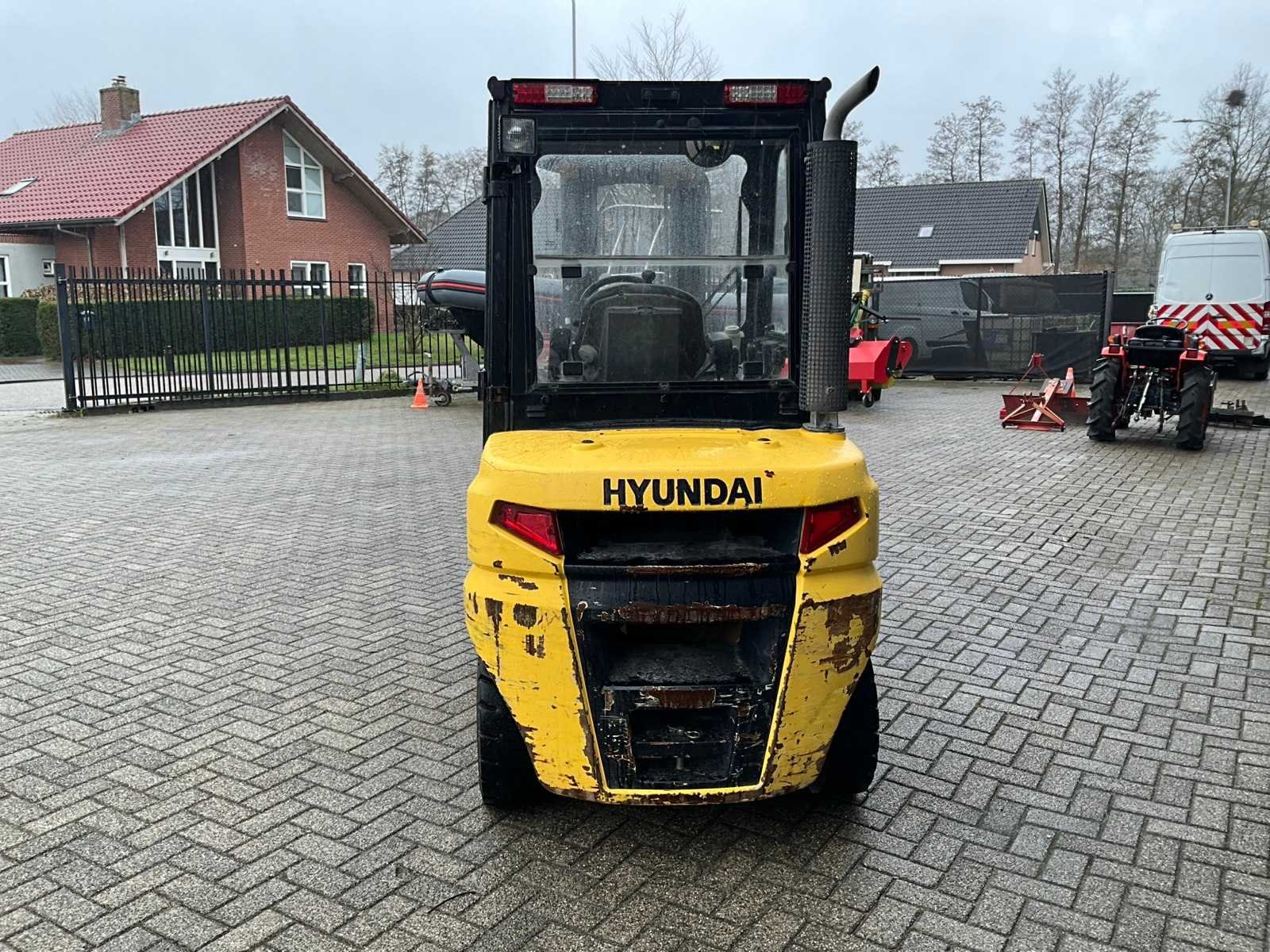 Merk: Hyundai Type: 30D-9E Bouwjaar: 2017 Serienummer: HHKHHN37LH0000190 Brandstof: Diesel Mast: Triple Soort band: Luchtbanden Aantal wielen: 4 Ruw terrein: true Free-lift: true Side-shift: true Hydraulisch verstelbare lepels: true Eigen gewicht: 4459kg Hefvermogen: 2670kg Lepellengte: 1200mm Hefhoogte: 4700mm Luchtbanden: true Minimale doorrijhoogte: 2200mm Totale afmeting Breedte: 1250mm Totale afmeting Hoogte: 2200mm Diesel: true