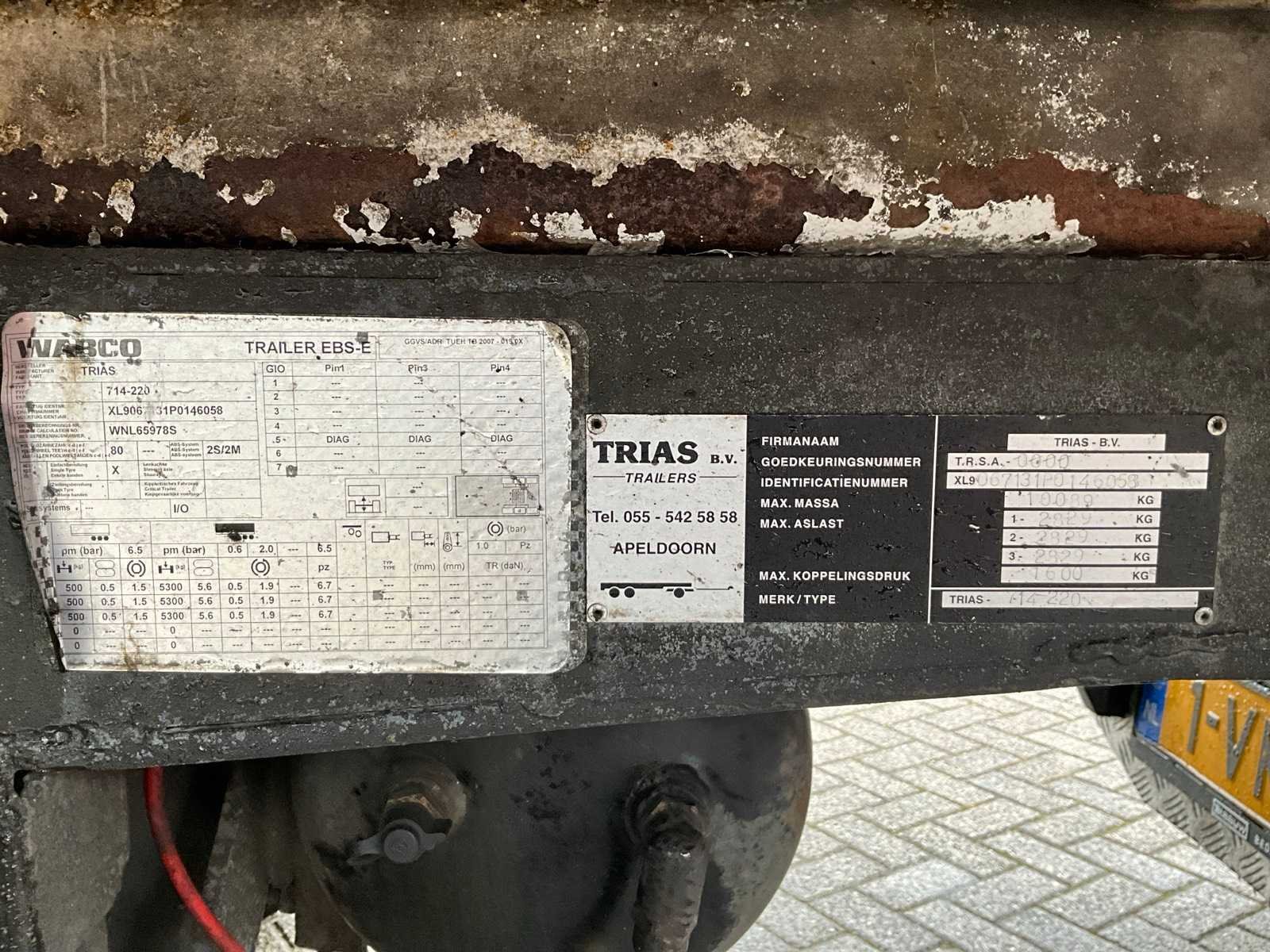 Voorzien van “Hatz” 3L41C Silent Powerpack Merk: Trias Bouwjaar: 2007 Chassisnummer VIN: XL9067131P0146058 Kenteken: OK-14-BK Datum eerste toelating: 2007-10-10 APK vervaldatum: 2025-03-15 Aantal assen: 3