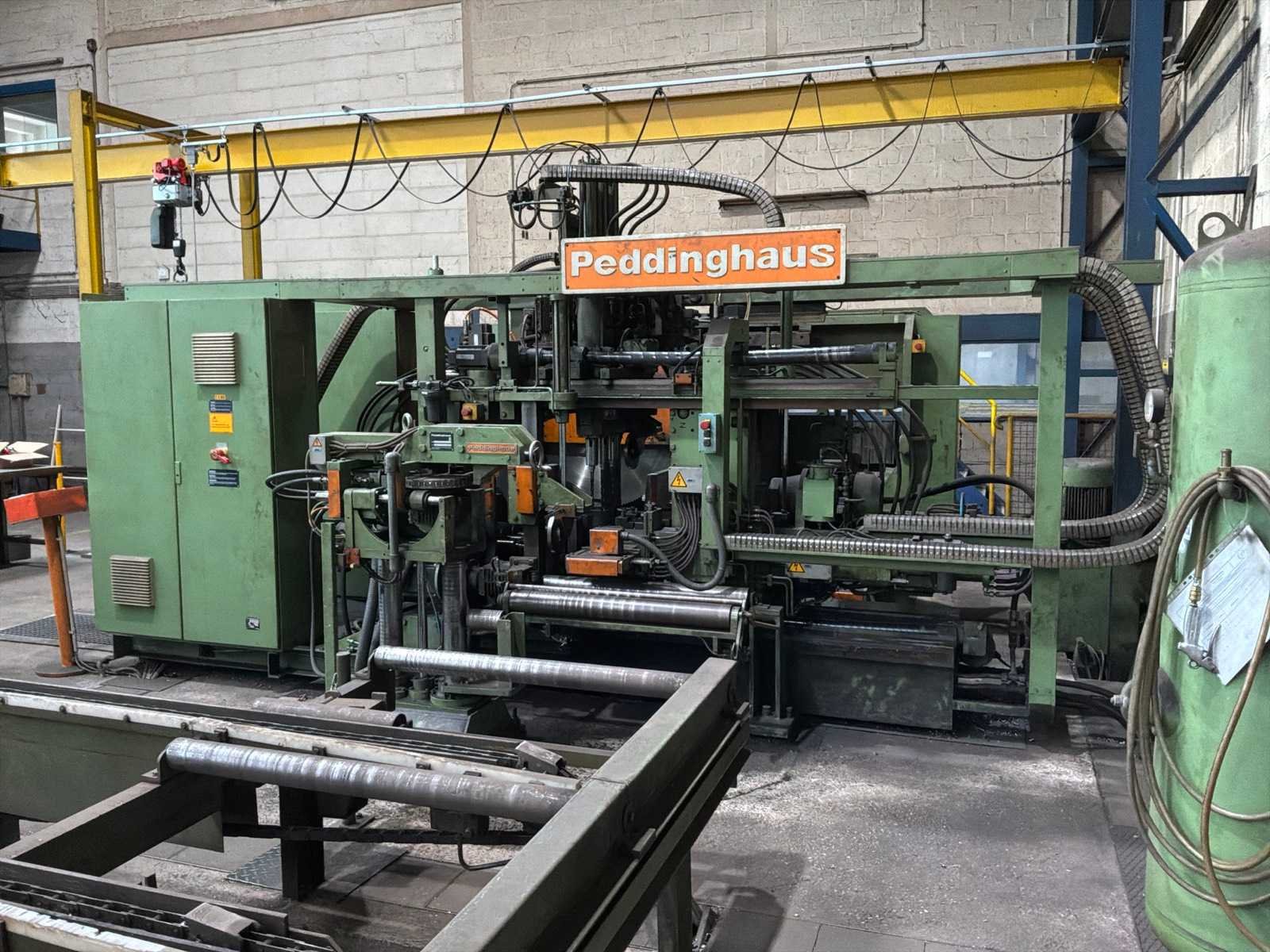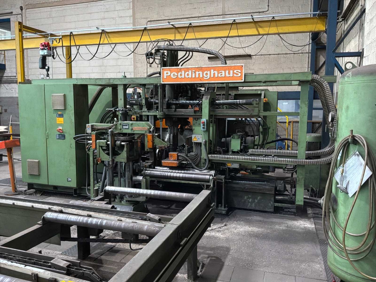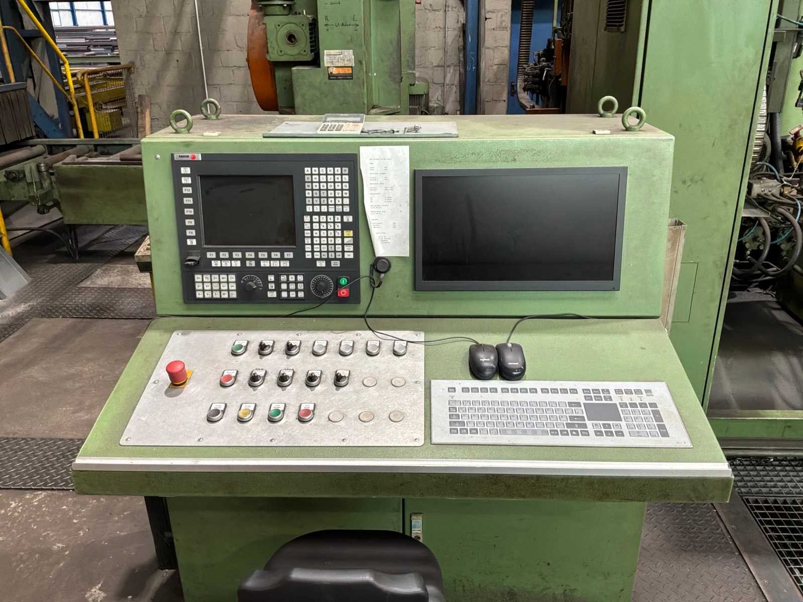 Met CNC-besturing, fabrikant FAGOR Geschat totaalgewicht machine en rollenbaan: 40 ton Kavel dient nog gedemonteerd te worden. Afmetingen rollenbaan (LxBxH) 18,5m X 7,5m X 85cm. Dit kavel bevindt zich nog op een externe locatie. Bezichtiging op de kijkdag enkel op afspraak mogelijk. Na sluiten van de veiling neemt de verkoper contact met u op voor het maken van een ophaalafspraak. Merk: Peddinghaus Type: SIGNO 05 UND TDK 1000/9G Serienummer: 4812674595006 Totale afmeting L: 5400mm Totale afmeting Breedte: 4800mm Totale afmeting Hoogte: 2900mm