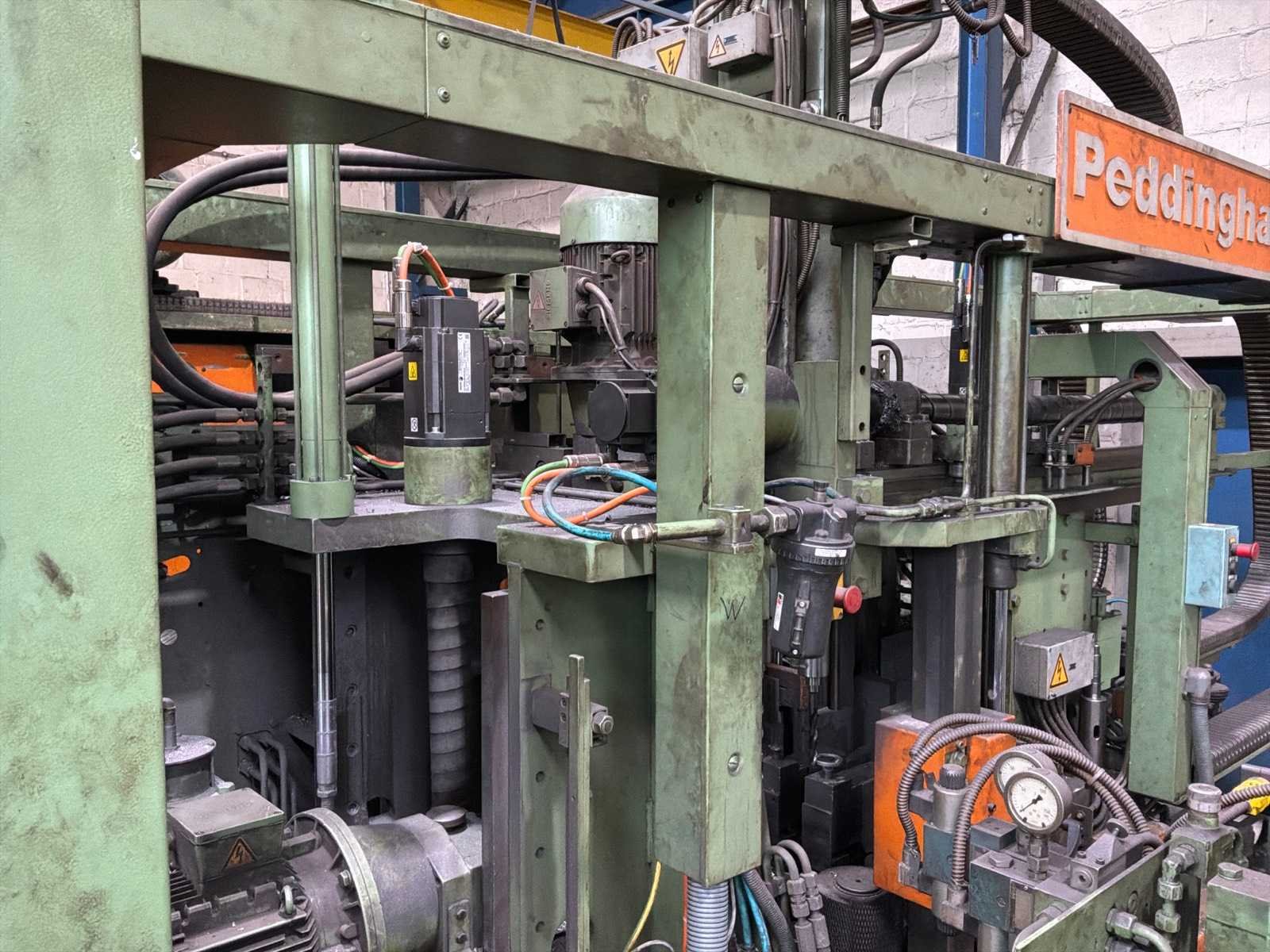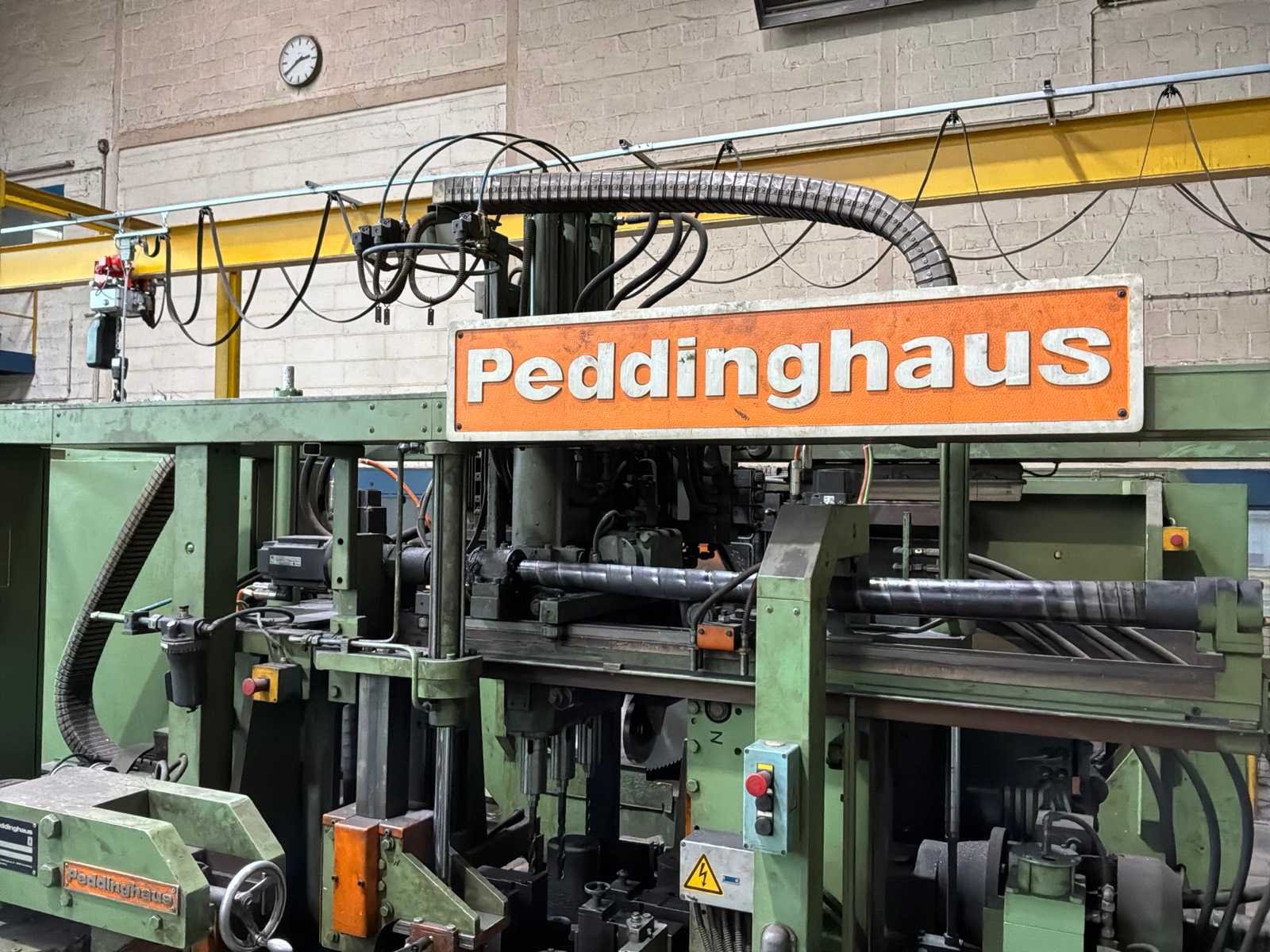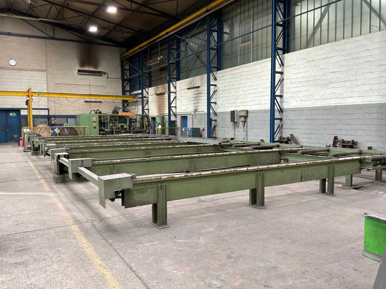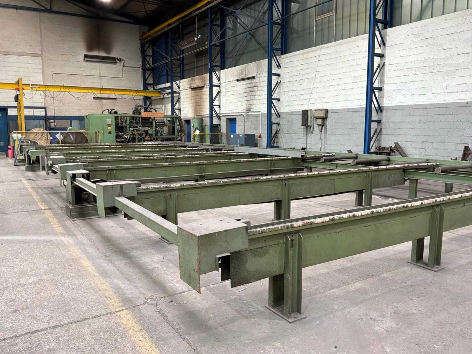 Met CNC-besturing, fabrikant FAGOR Geschat totaalgewicht machine en rollenbaan: 40 ton Kavel dient nog gedemonteerd te worden. Afmetingen rollenbaan (LxBxH) 18,5m X 7,5m X 85cm. Dit kavel bevindt zich nog op een externe locatie. Bezichtiging op de kijkdag enkel op afspraak mogelijk. Na sluiten van de veiling neemt de verkoper contact met u op voor het maken van een ophaalafspraak. Merk: Peddinghaus Type: SIGNO 05 UND TDK 1000/9G Serienummer: 4812674595006 Totale afmeting L: 5400mm Totale afmeting Breedte: 4800mm Totale afmeting Hoogte: 2900mm