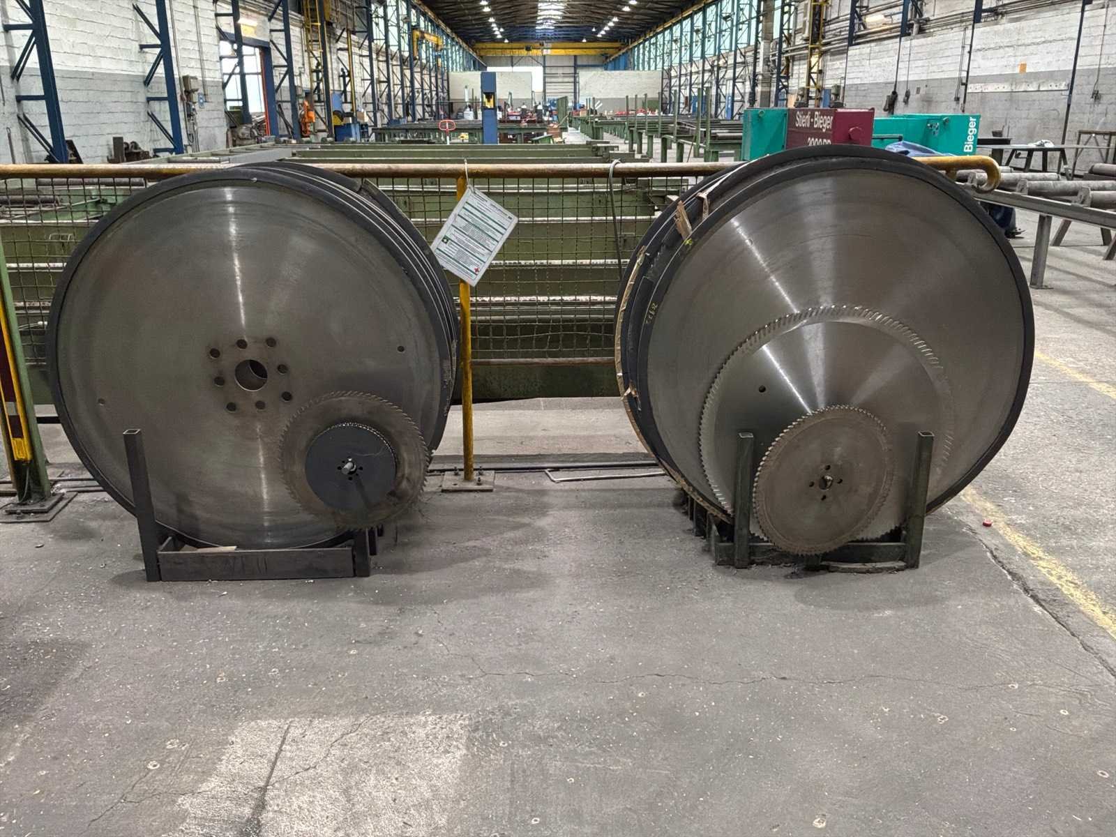 Diameter van de 10 grote cirkelzaagbladen circa 124 cm Dit kavel bevindt zich nog op een externe locatie. Bezichtiging op de kijkdag enkel op afspraak mogelijk. Na sluiten van de veiling neemt de verkoper contact met u op voor het maken van een ophaalafspraak.