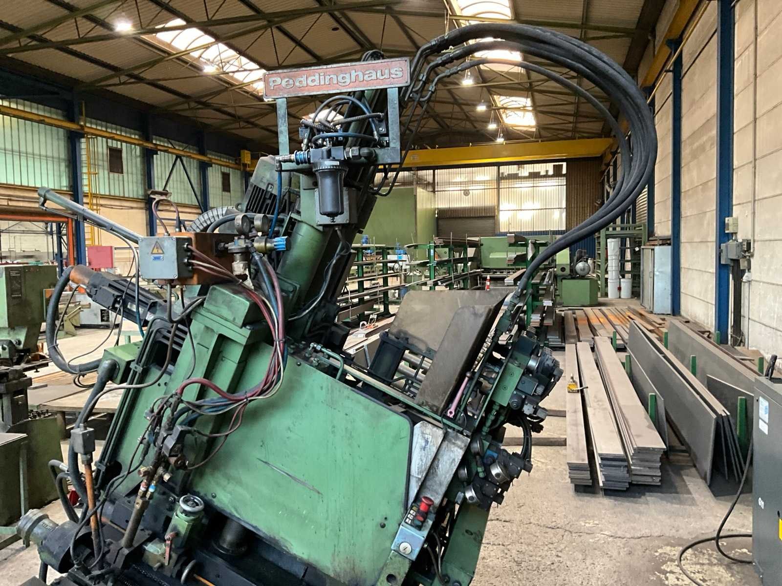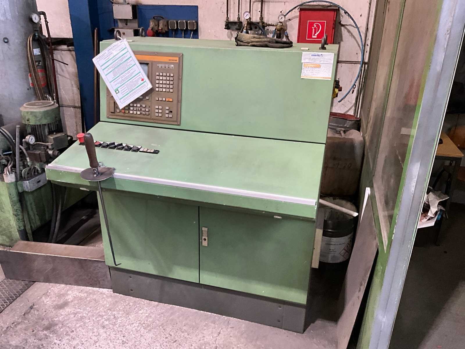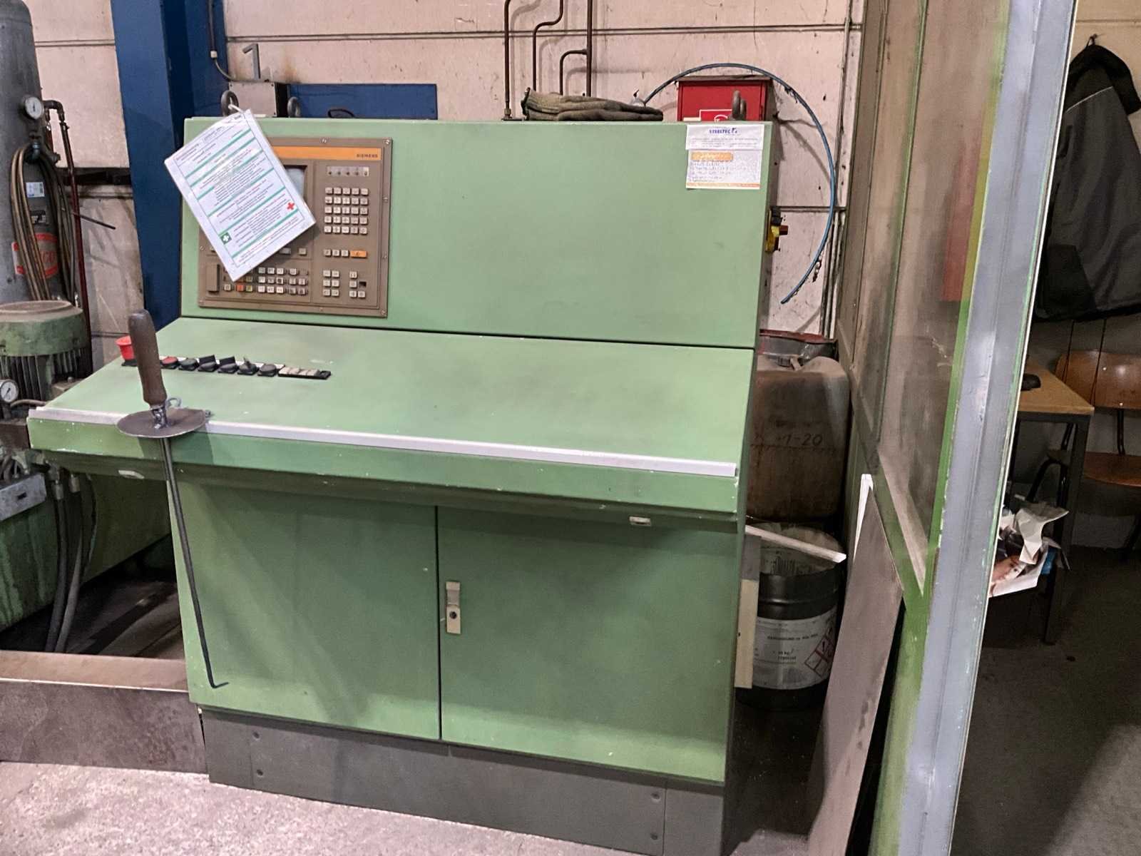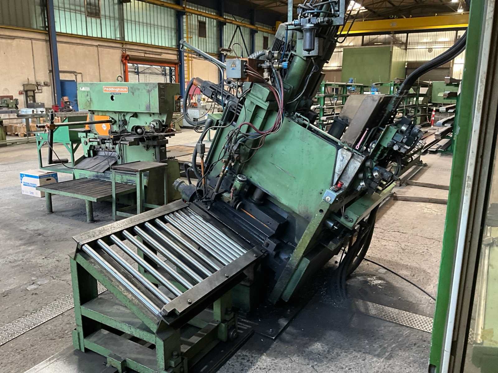 Inclusief hydrauliekunit Aan en afvoerrollerbaan Aansturing SIEMENS, Typ: SINUMERIK 810M De machine is uitgerust met drie boorspilkoppen die gaten kunnen boren van een minimumdiameter van 10 mm tot een maximum van 38 mm, overeenkomend met de opgegeven boor diameter van 38,0 mm. Voorzien van één zuurstof-acetyleen brander, geschikt voor brandbewerkingen met een brandbreedte instelbaar van 80 mm tot 600 mm, kan materiaaldikte tussen 6 mm en 50 mm aan. De maximale werkstukgewichtcapaciteit is 500 kg Dit kavel bevindt zich nog op een externe locatie. Bezichtiging op de kijkdag enkel op afspraak mogelijk. Na sluiten van de veiling neemt de verkoper contact met u op voor het maken van een ophaalafspraak. Merk: Peddinghaus Type: FDB600 Serienummer: 4759777690011