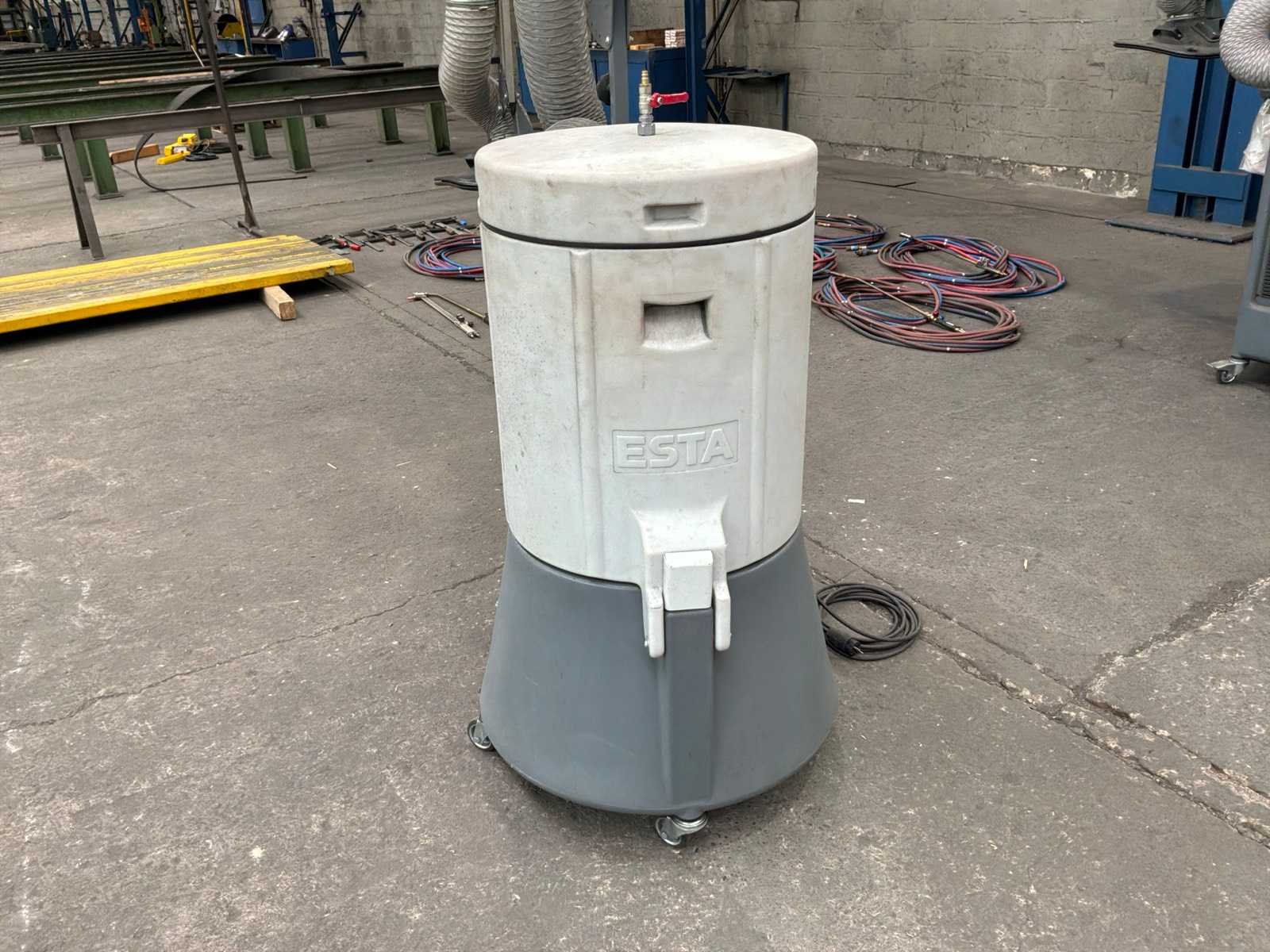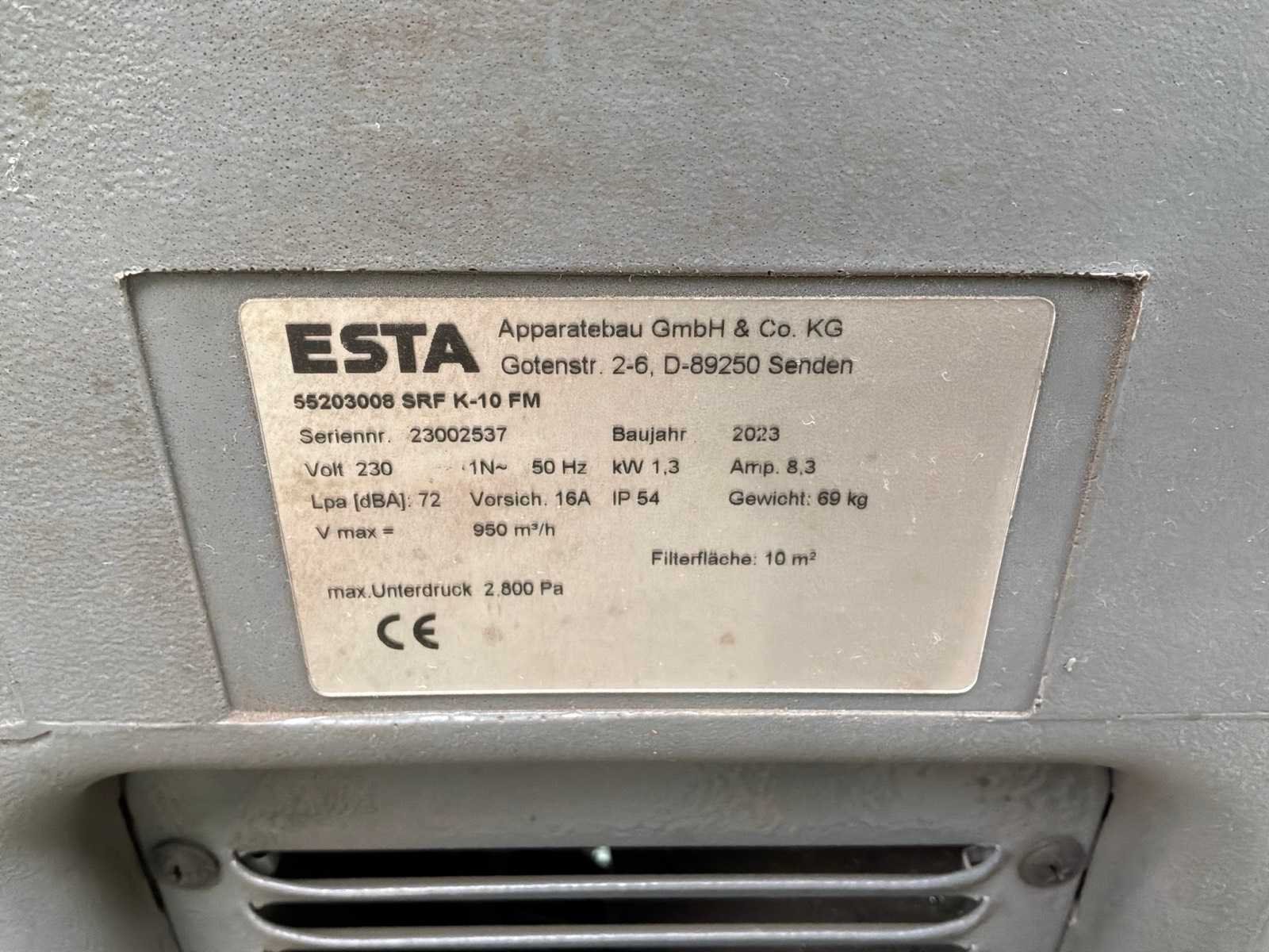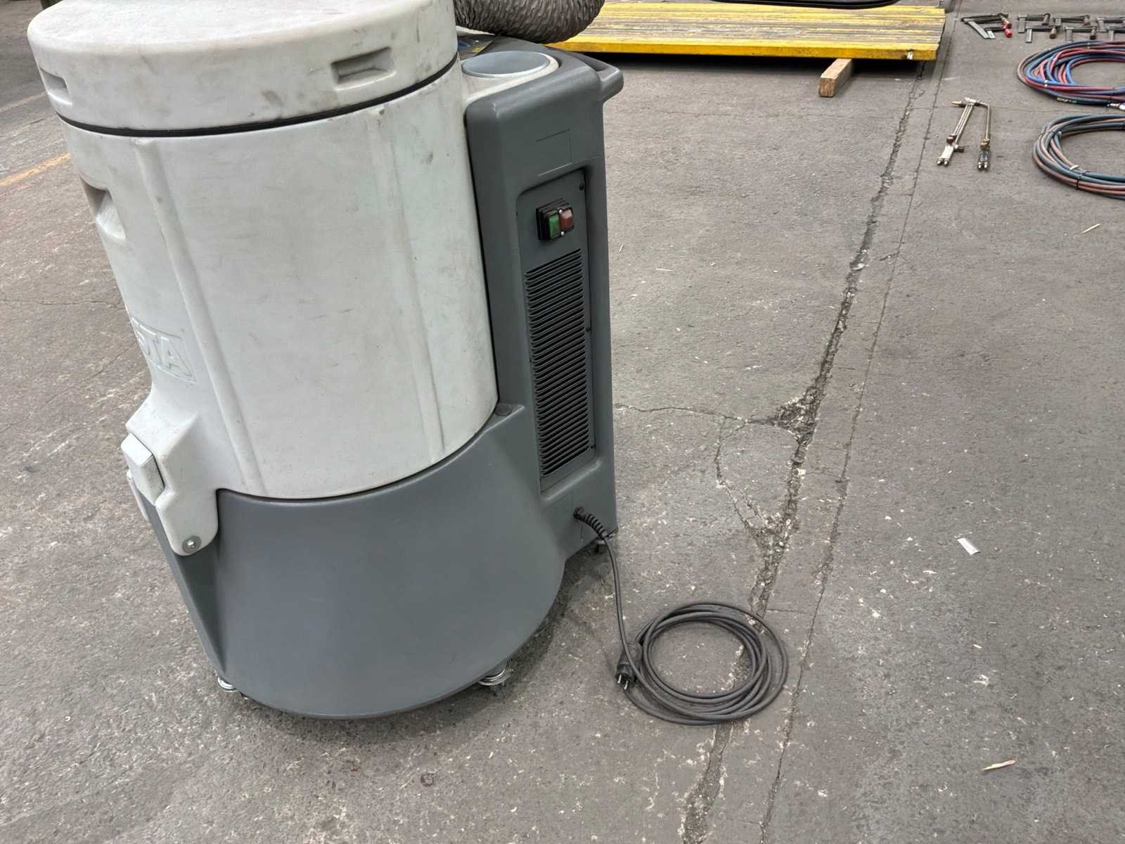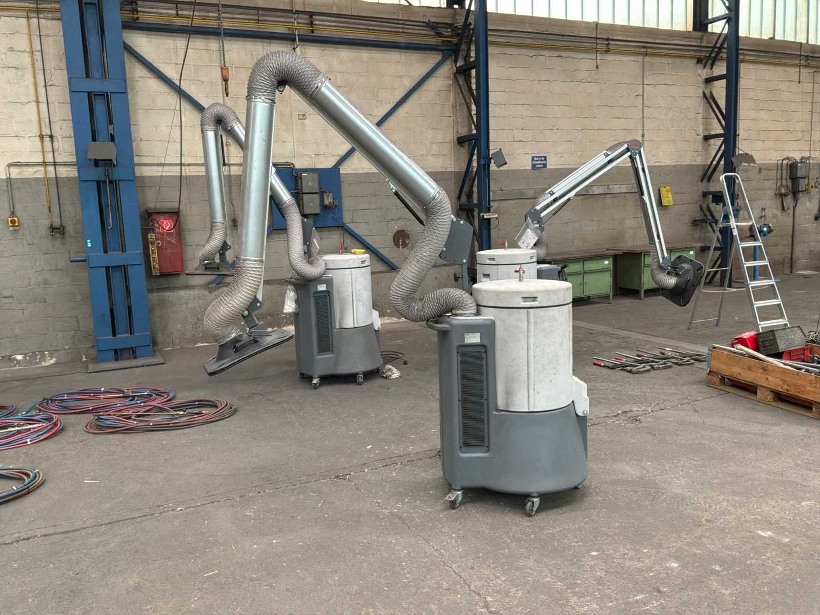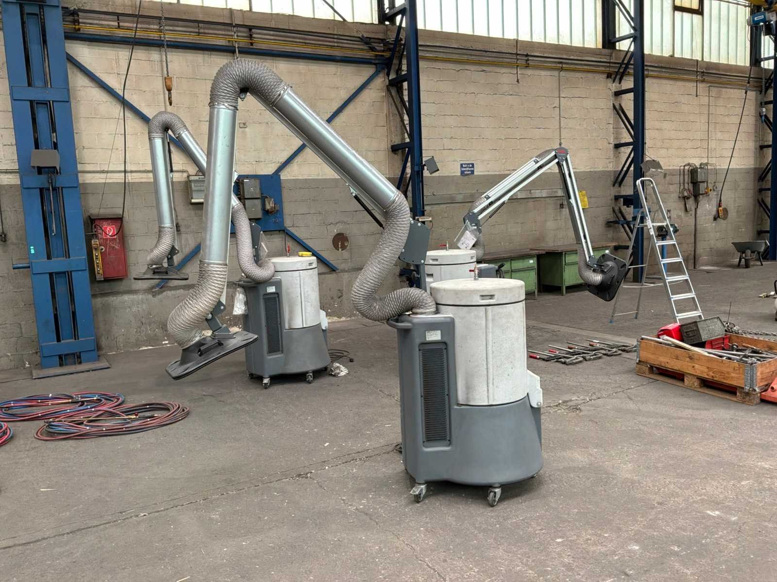 Mobiele stationaire lasdampafzuiger. stofafzuiger, filter ESTA SRF K-10 1,3 Kw (230V) ventilator geplaatst aan de schone zijde. Afzuigarm met een bereik van 2 m. Capaciteit 950 m3/h. Vacuümdruk 2800 Pa. De SRF K-serie is ontworpen voor het afzuigen en filteren van lasrook en licht slijpstof. Het is de perfecte oplossing voor het probleem van lasrook en andere stofvervuiling. Fjc Hrpqslqw Igol Dofw Las- of soldeerdampen worden gefilterd met een filtratie-efficiëntie van 99,9%. Dankzij het hoge luchtdebiet kunnen zelfs grote rookwolken worden afgezogen. Handmatig geactiveerde automatische filterreiniging - sluit na afloop van het werk de persluchtleiding aan op het apparaat en start handmatig de filterreinigingsprocedure. Het filterpatroon wordt automatisch gereinigd door pulsen perslucht door het roterende mondstuk, waardoor de levensduur van het patroon aanzienlijk wordt verlengd. Het apparaat hoeft tijdens het lassen niet op het persluchtnet te worden aangesloten en blijft dus mobiel. Merk: Esta Type: SRF K-10 FM Bouwjaar: 2023 Machinegewicht: 69kg