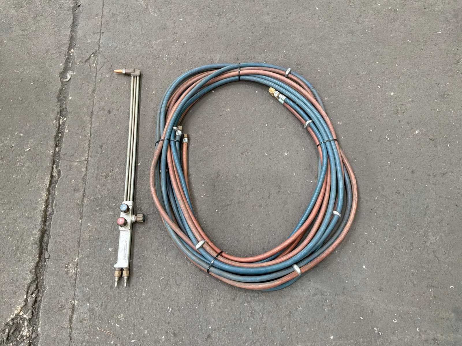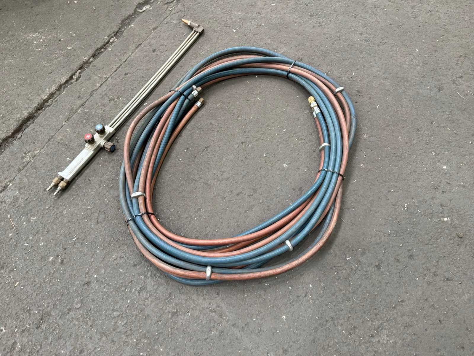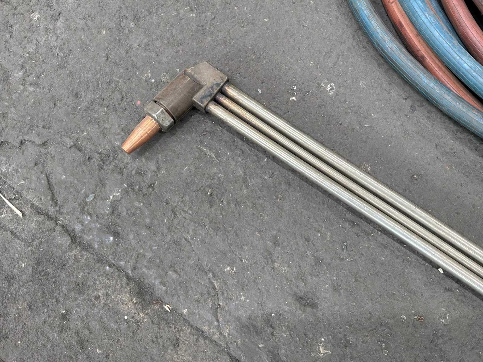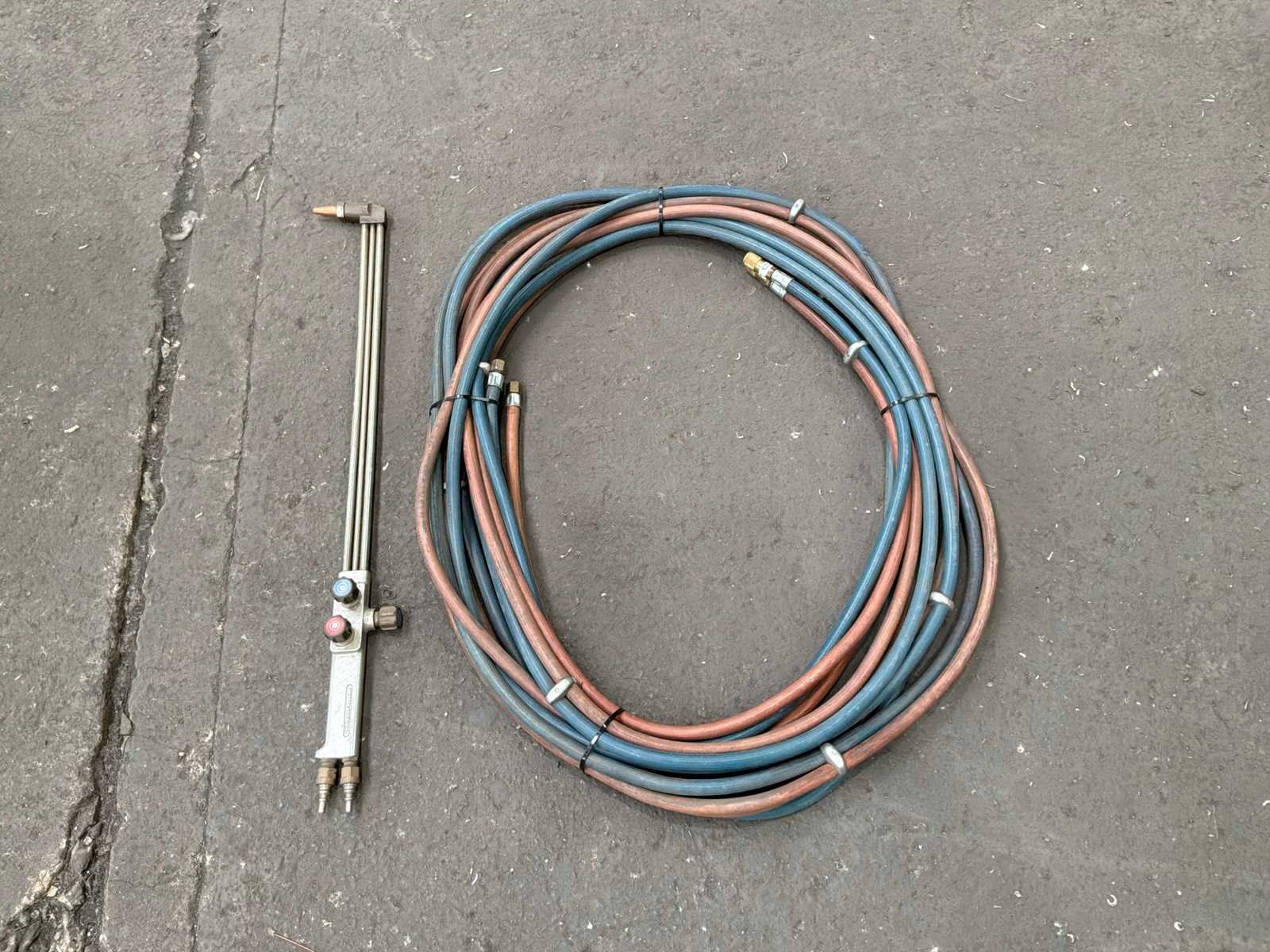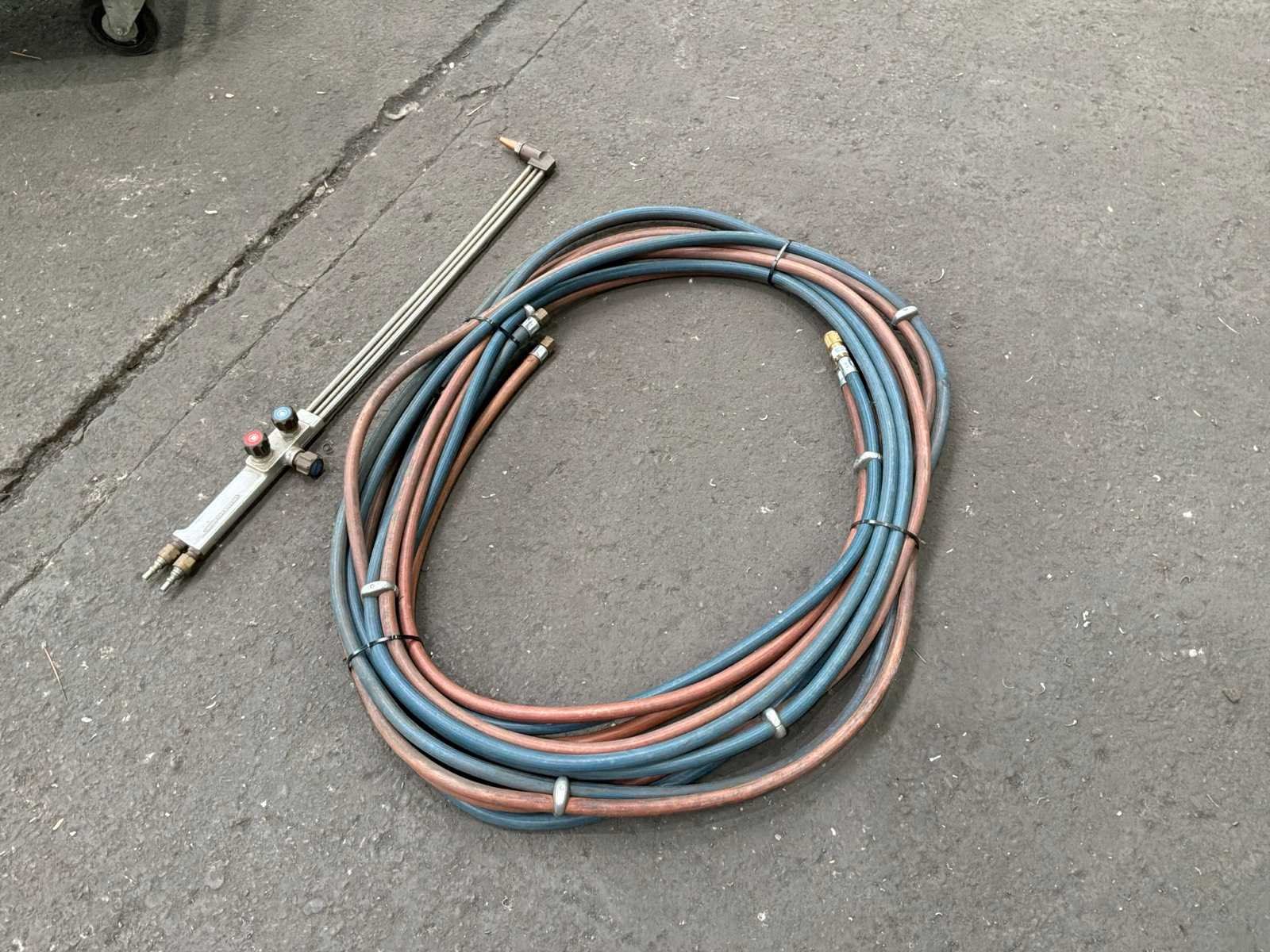 Bestaande uit een snijbrander toorts en bijbehorende slangen. Merk: Messer Griesheim