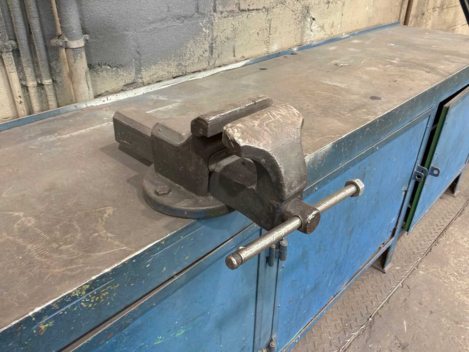 Stalen werkbank met bankschroef