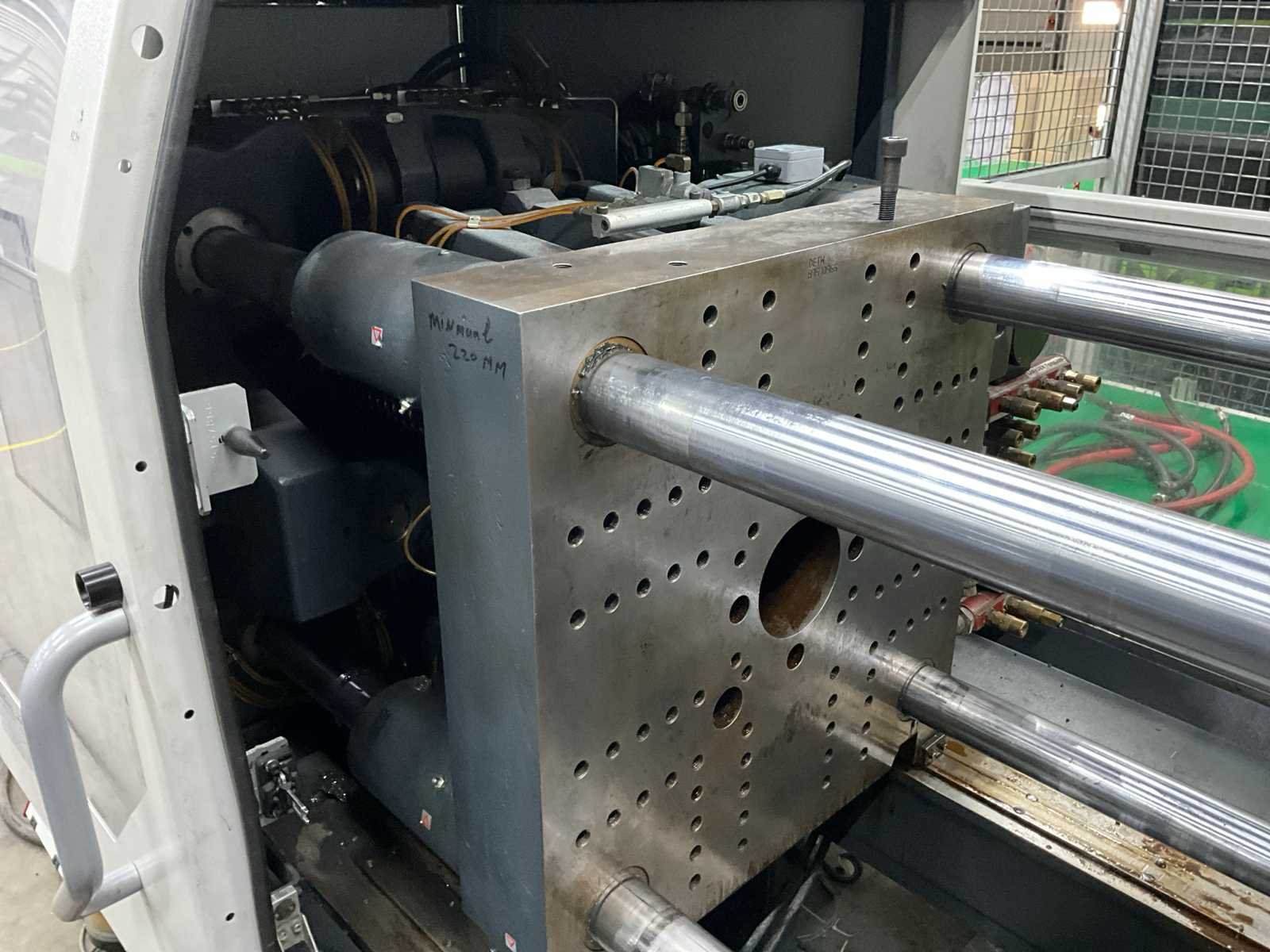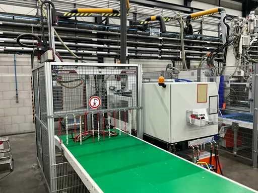 Machine is professioneel buiten werking gezet Onderhoudshistorie en boekwerken aanwezig Machine wordt geladen Exclusief tempereerapparaten, matrijzen, transportband, hopper, afzuiging Inclusief kooi Inbouwhoogte 200mm Afhalen op afspraak Merk: Demag Type: Elect. 100/430-410 Bouwjaar: 2008 Schroefdiameter: 40mm Injectievolume: 174cm³ Sluitkracht: 100kN