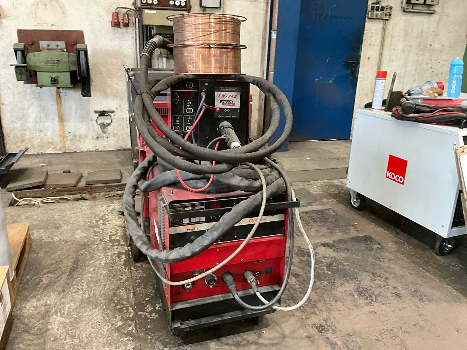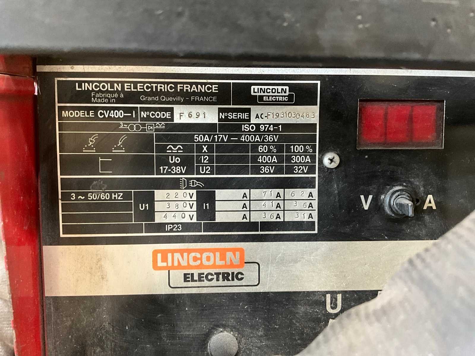 Lincoln electric cv-400 mig lasapparaat met draadvoorunit en koeling