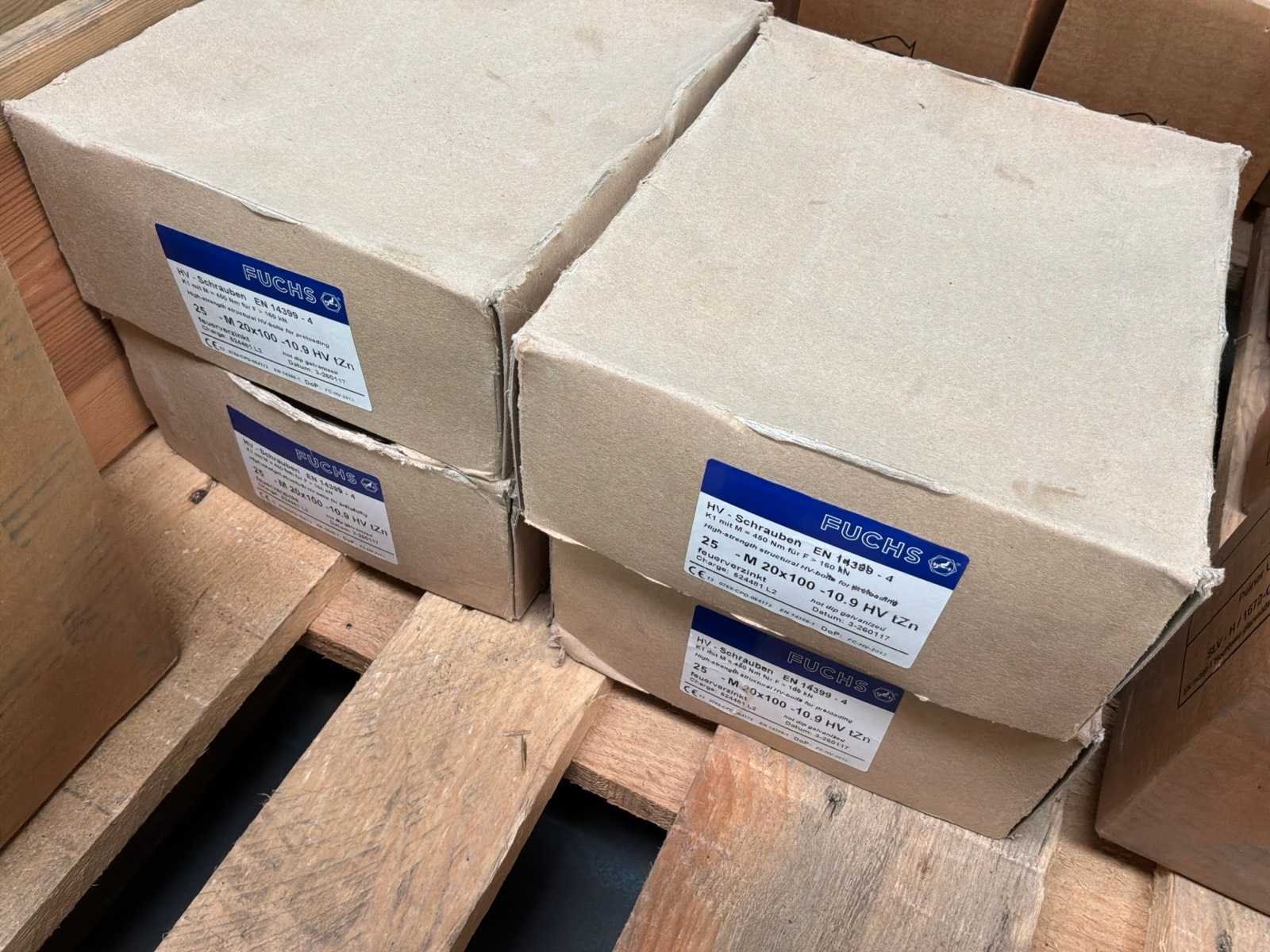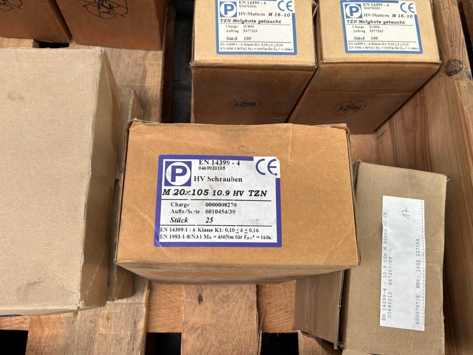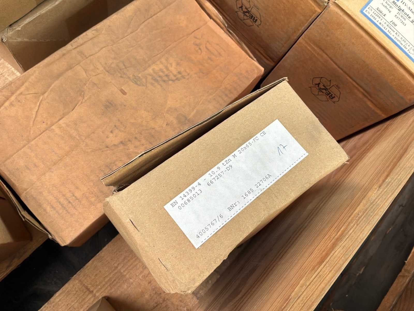 15x M16 moeren doosjes van 100 stuks 1x M16 moeren doos van 400 stuks 12x m16 ringen doosjes van 200 stuks 6x M20 bouten doosjes van 25 stuks