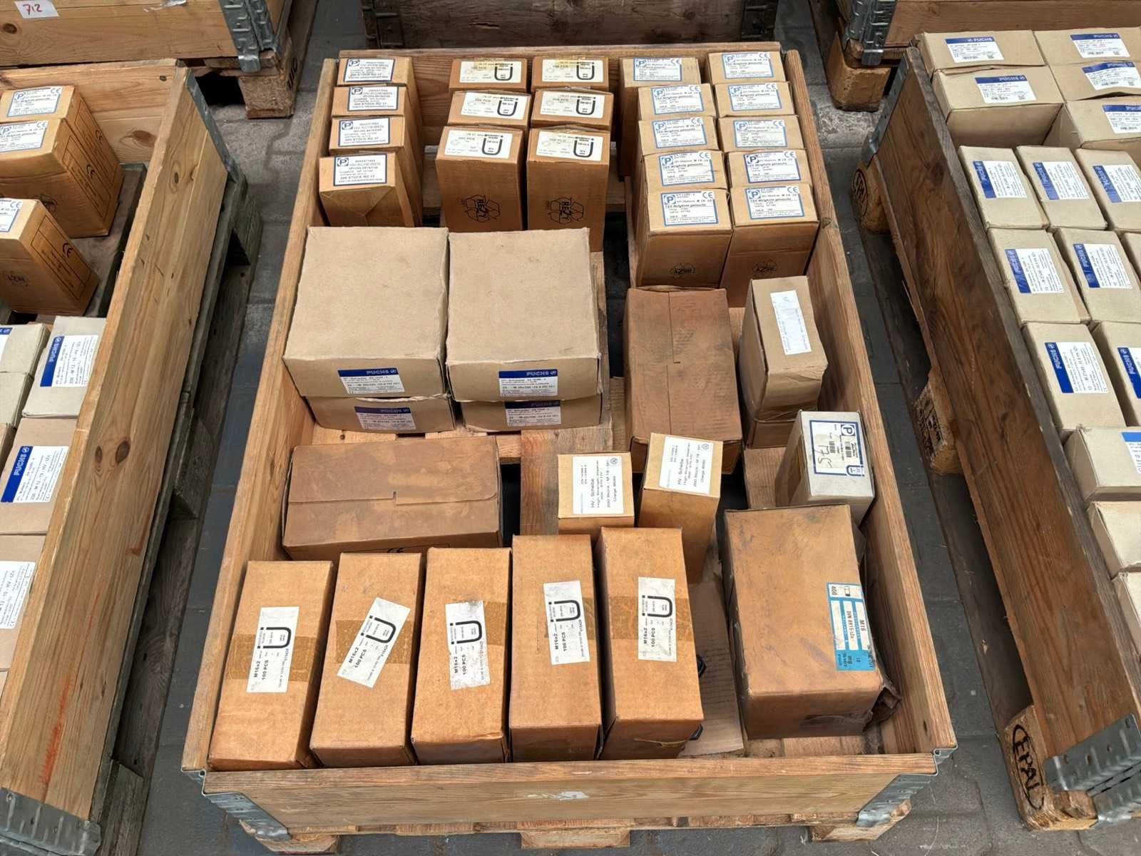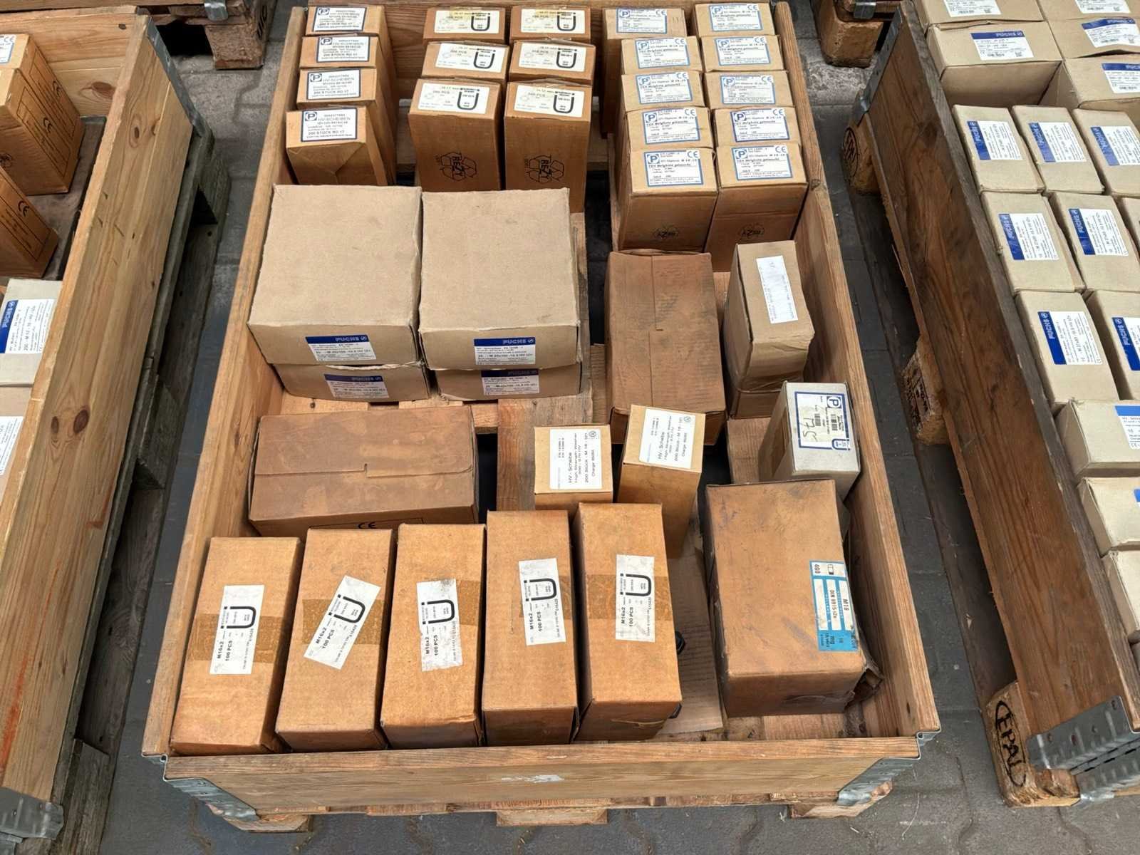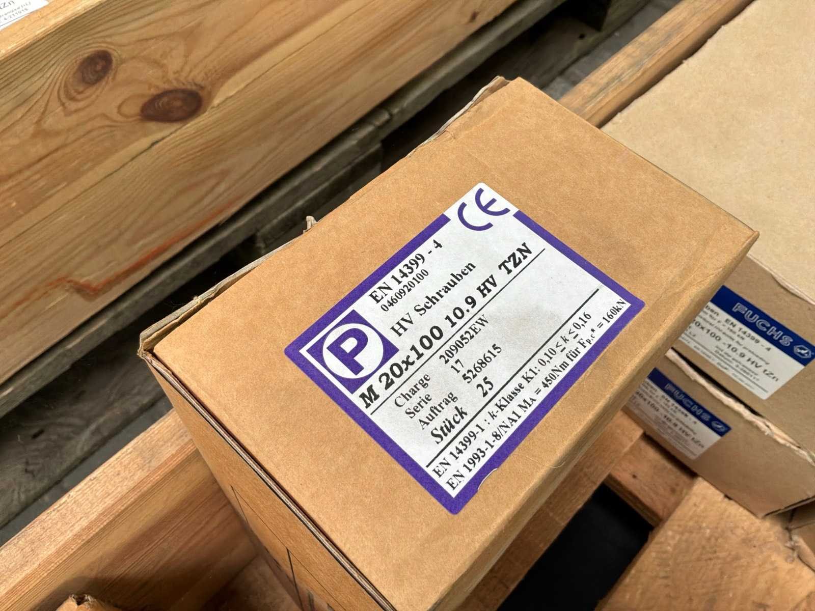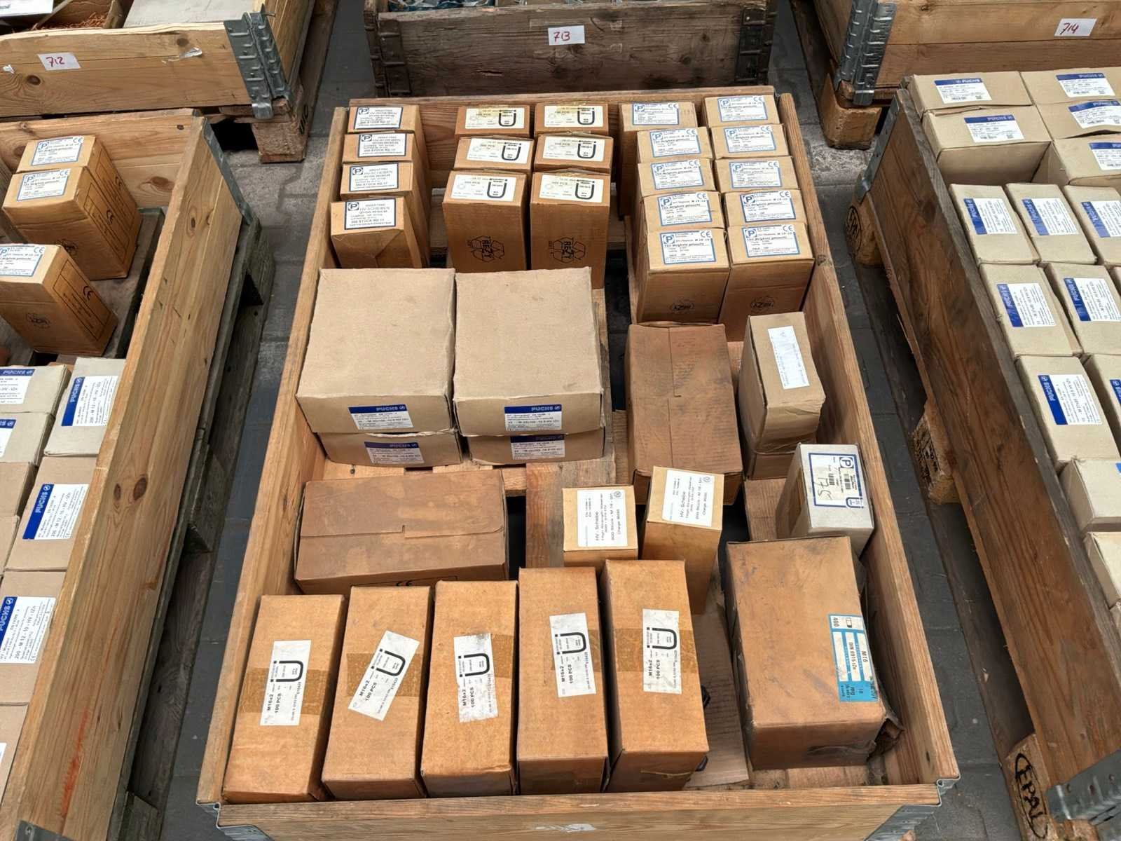 15x M16 moeren doosjes van 100 stuks 1x M16 moeren doos van 400 stuks 12x m16 ringen doosjes van 200 stuks 6x M20 bouten doosjes van 25 stuks