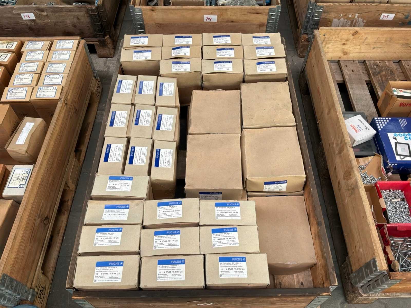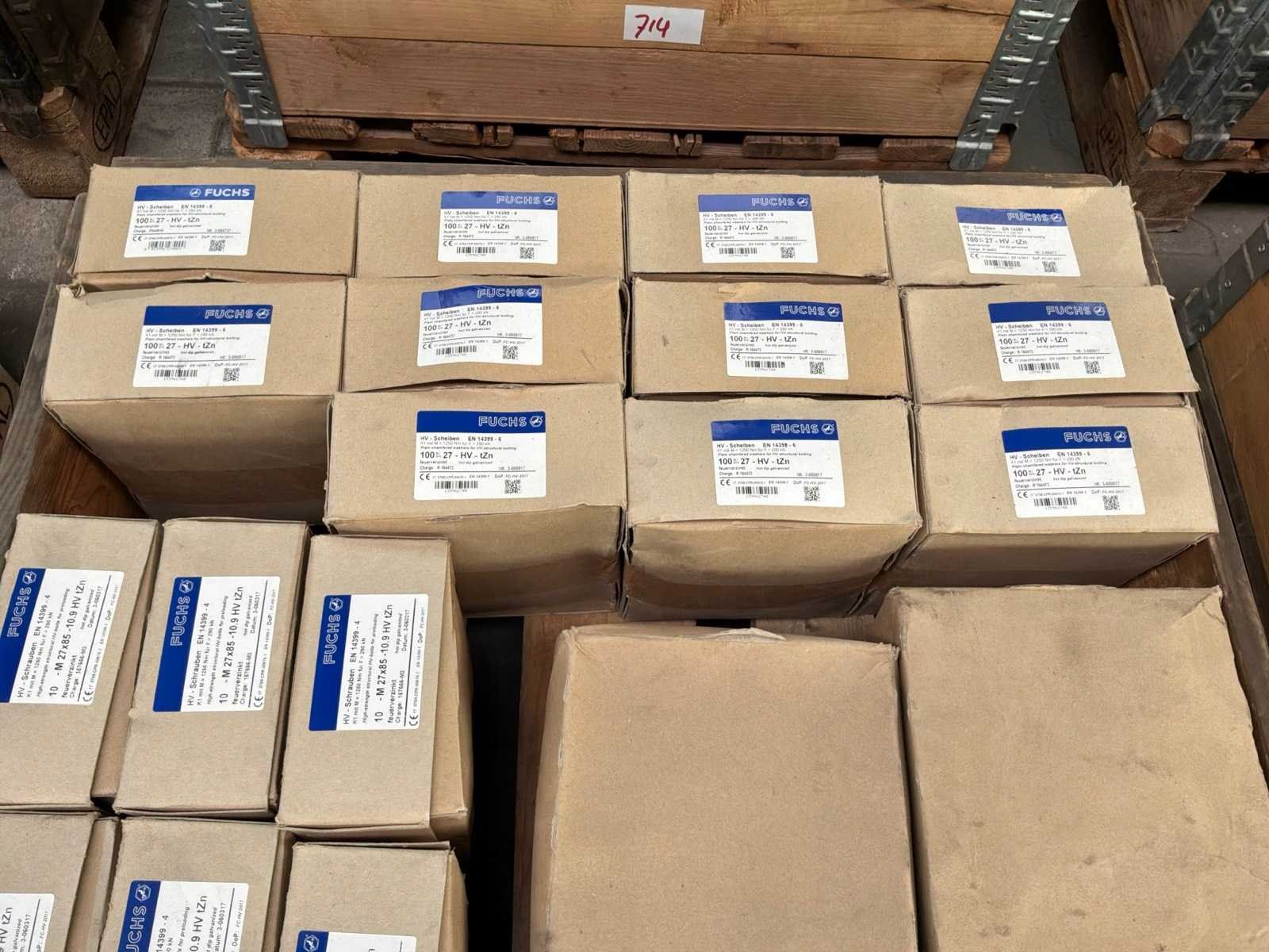 19x M27 bouten doosje van 10 stuks 9x M27 moeren doosjes van 50 stuks. 11x M27 ringen doosjes van 100 stuks Merk: Fuchs