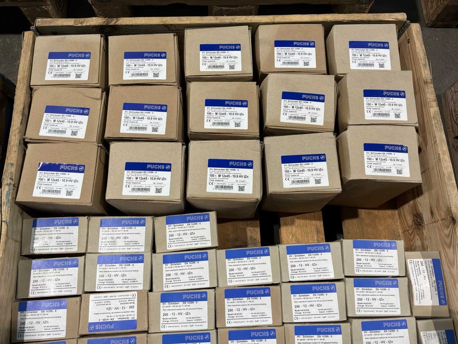 15x Doosjes met M12 bouten van 100 stuks 75x doosjes van M12 ringen van 200 stuks Merk: Fuchs