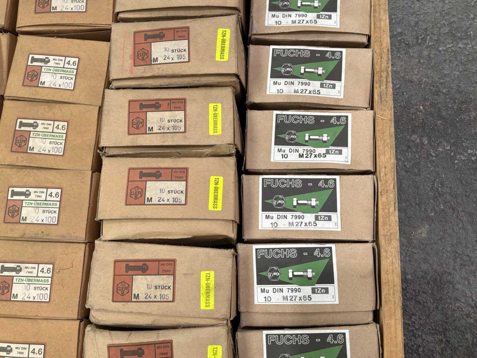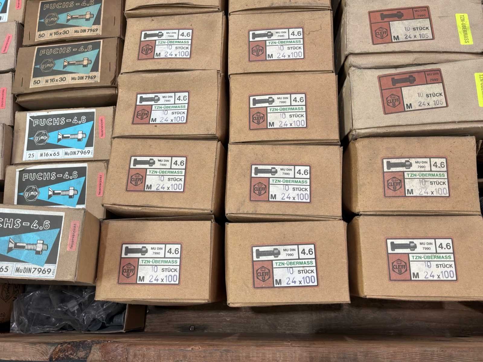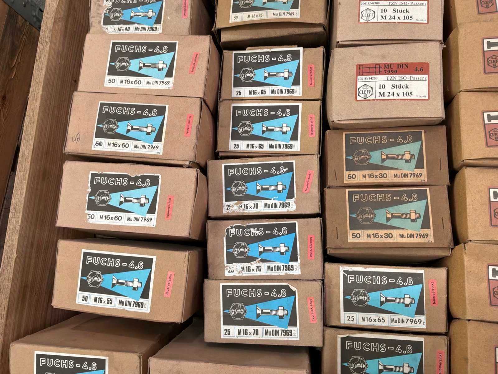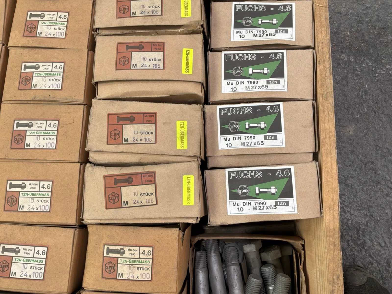 7x Doosjes met M27 bouten met moer van 10 stuks 27x Doosjes met M24 bouten met moer van 10 stuks 14x Doosjes met M16 bouten met moer van 50 stuks 8x Doosjes met M16 bouten met moer van 25 stuks