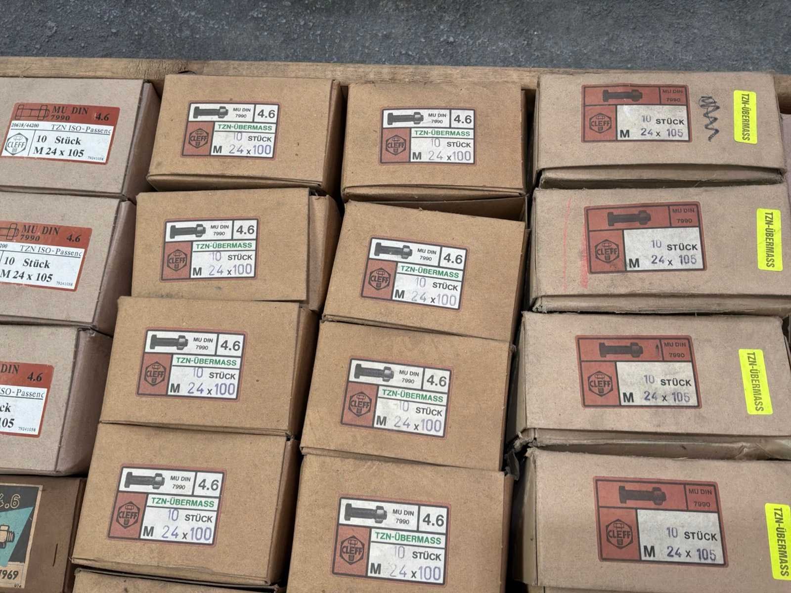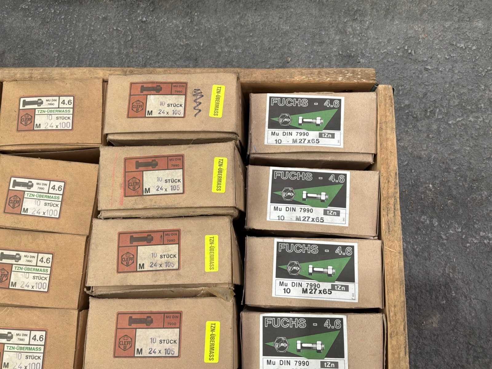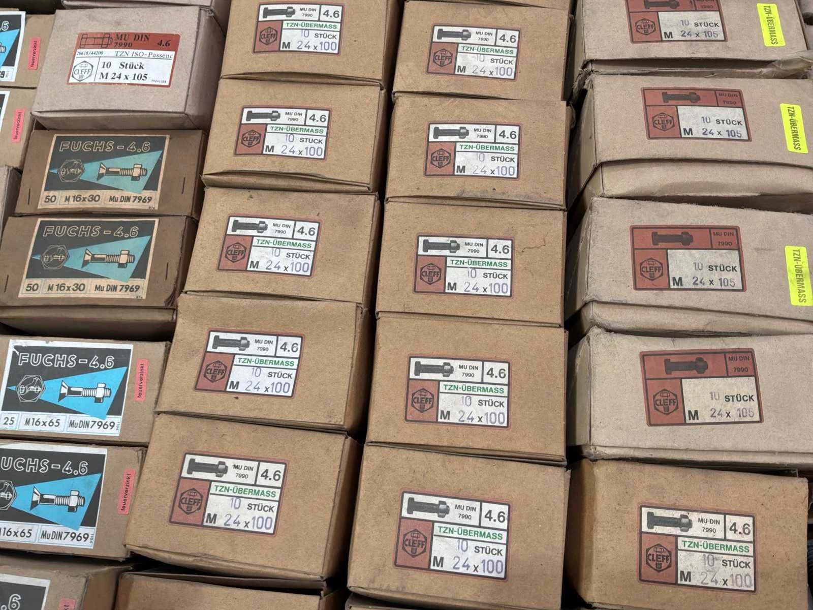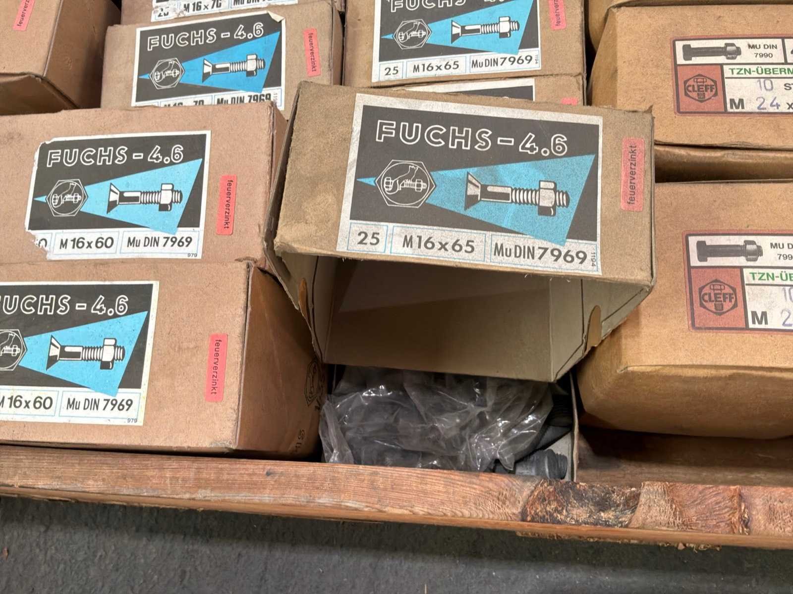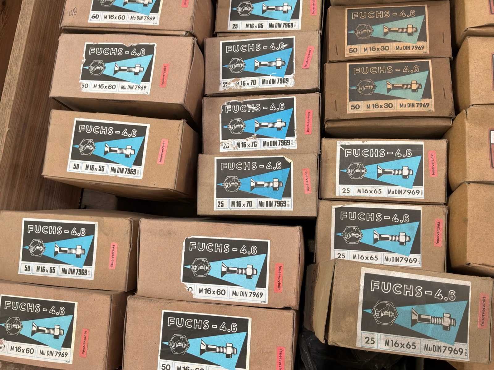 7x Doosjes met M27 bouten met moer van 10 stuks 27x Doosjes met M24 bouten met moer van 10 stuks 14x Doosjes met M16 bouten met moer van 50 stuks 8x Doosjes met M16 bouten met moer van 25 stuks