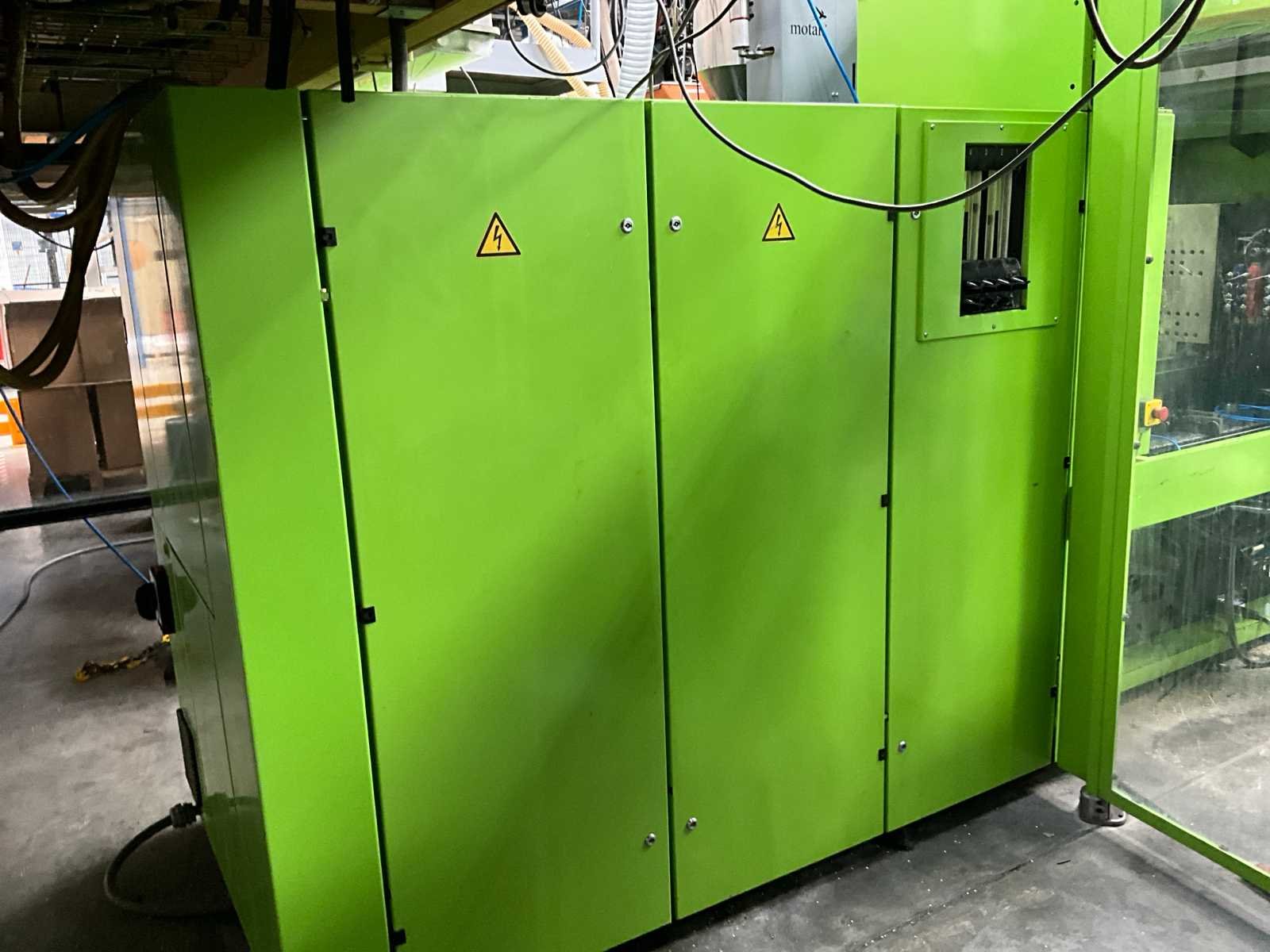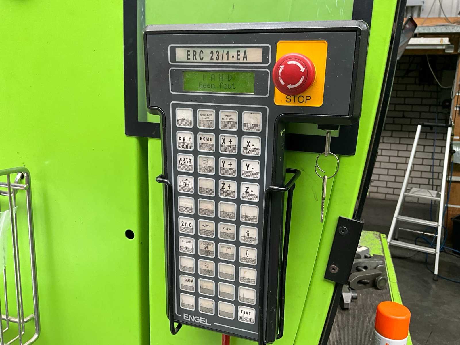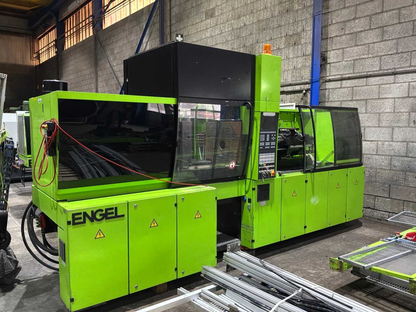Machine is professioneel buiten werking gezet Onderhoudshistorie en boekwerken aanwezig Machine wordt geladen Exclusief tempereerapparaten, matrijzen, transportband, hopper, afzuiging Inclusief groene kooi en robot Inbouwhoogte 250mm Urenstand kan afwijken omdat machine nog in productie staat Afhalen op afspraak Merk: Engel Type: ES 500/100HL-Victory Bouwjaar: 2001 Serienummer: 44294 Schroefdiameter: 40mm Injectievolume: 219,6cm³ Sluitkracht: 110kN Afgelezen urenstand: 78325 Machinegewicht: 6000kg