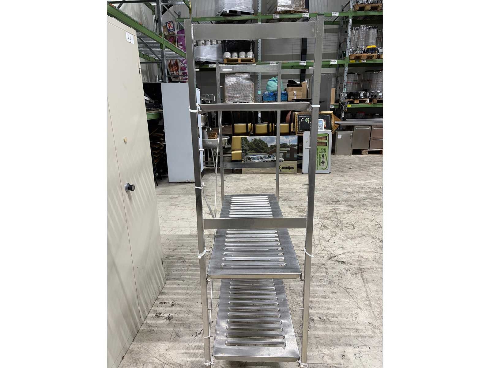 Merk: Hupfer Aantal legborden: 3 Demontabel: true Materiaal: RVS Totale afmeting L: 120cm Totale afmeting Breedte: 50cm Totale afmeting Hoogte: 180cm