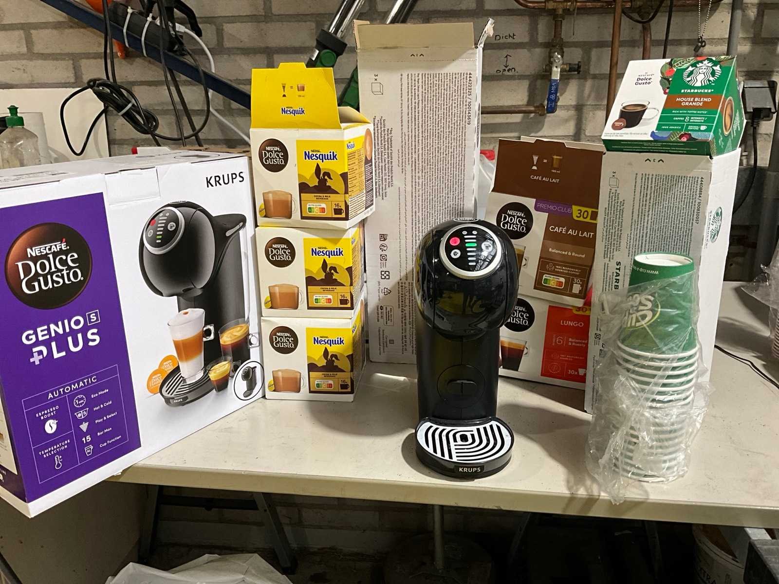 Met partij koffiecups, chocolademelkcups, 3 stuks tray fanta frisdrank en divers Merk: Krups Model: Dolce gusto