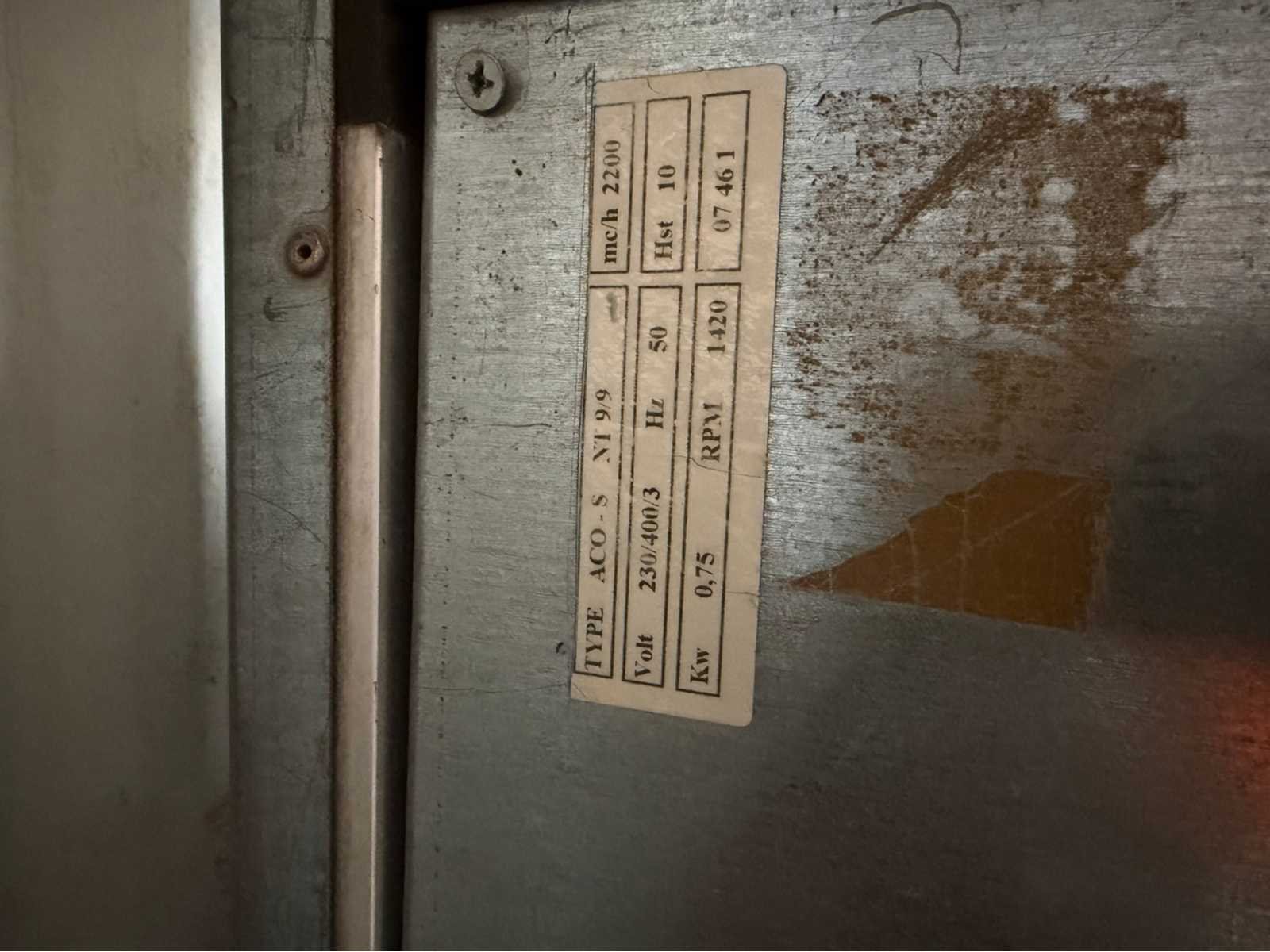Maximaal 25 graden Merk: InoxAir Type: ACO-S NT 9/9 Vermogen: 0.75kW Eigen gewicht: 200kg Totale afmeting L: 1700mm Totale afmeting Breedte: 950mm Totale afmeting Hoogte: 500mm Aansluiting: 400V