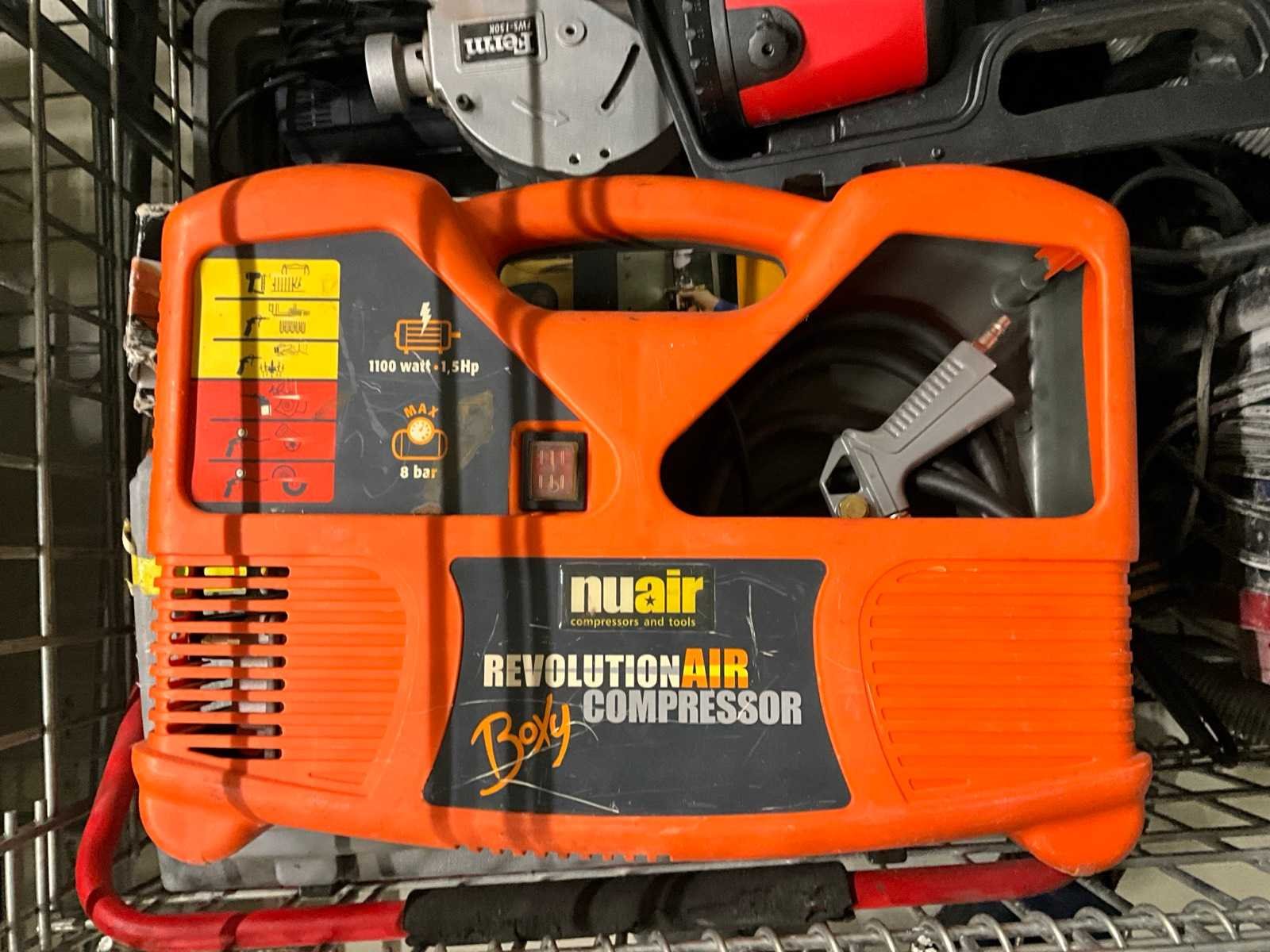 Waaronder haakse slijper, stofzuiger, luchtspuit. In gaaskrat