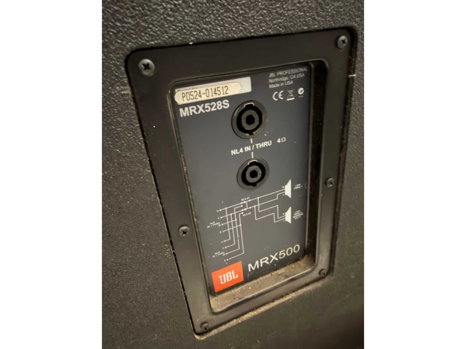 Zonder bekabeling Merk: JBL Type: MRX528S Aansluiting: 230V Totale afmeting L: 700mm Totale afmeting Breedte: 530mm Totale afmeting Hoogte: 1100mm Eigen gewicht: 55kg