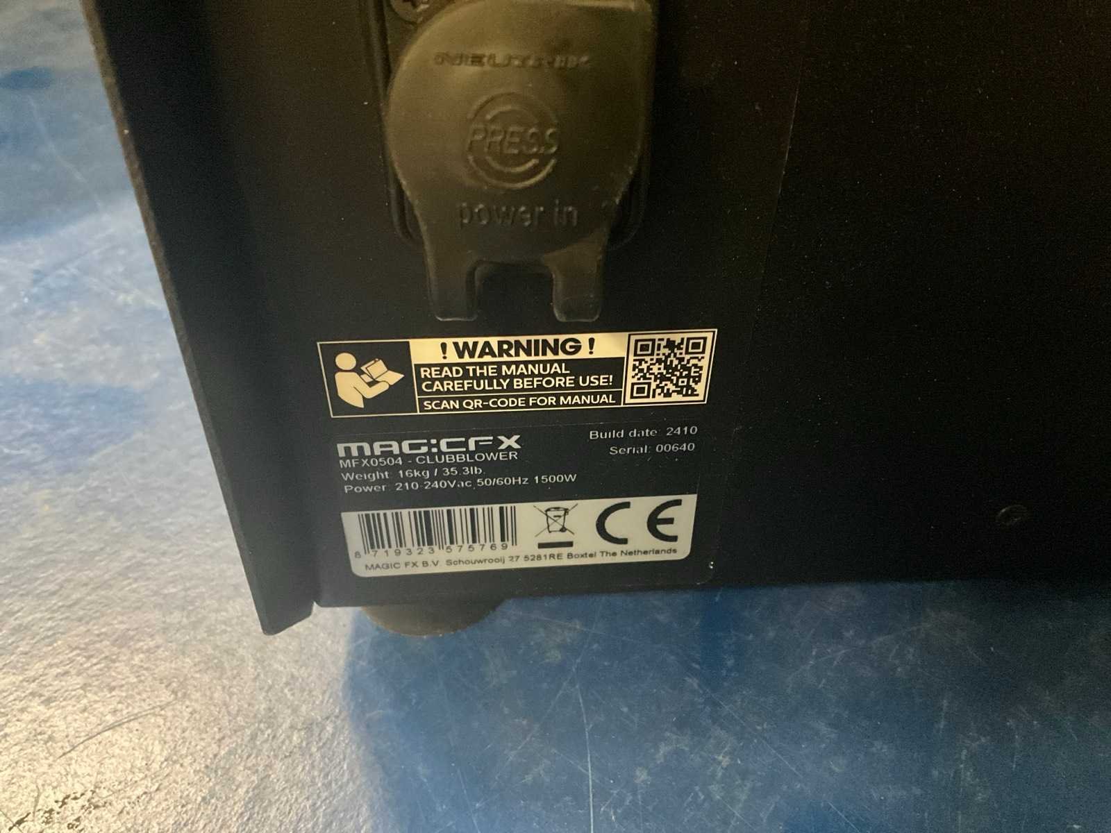 1500W Merk: MagicFX Type: Clubblower Bouwjaar: 2024 Aansluiting: 230V Eigen gewicht: 16kg