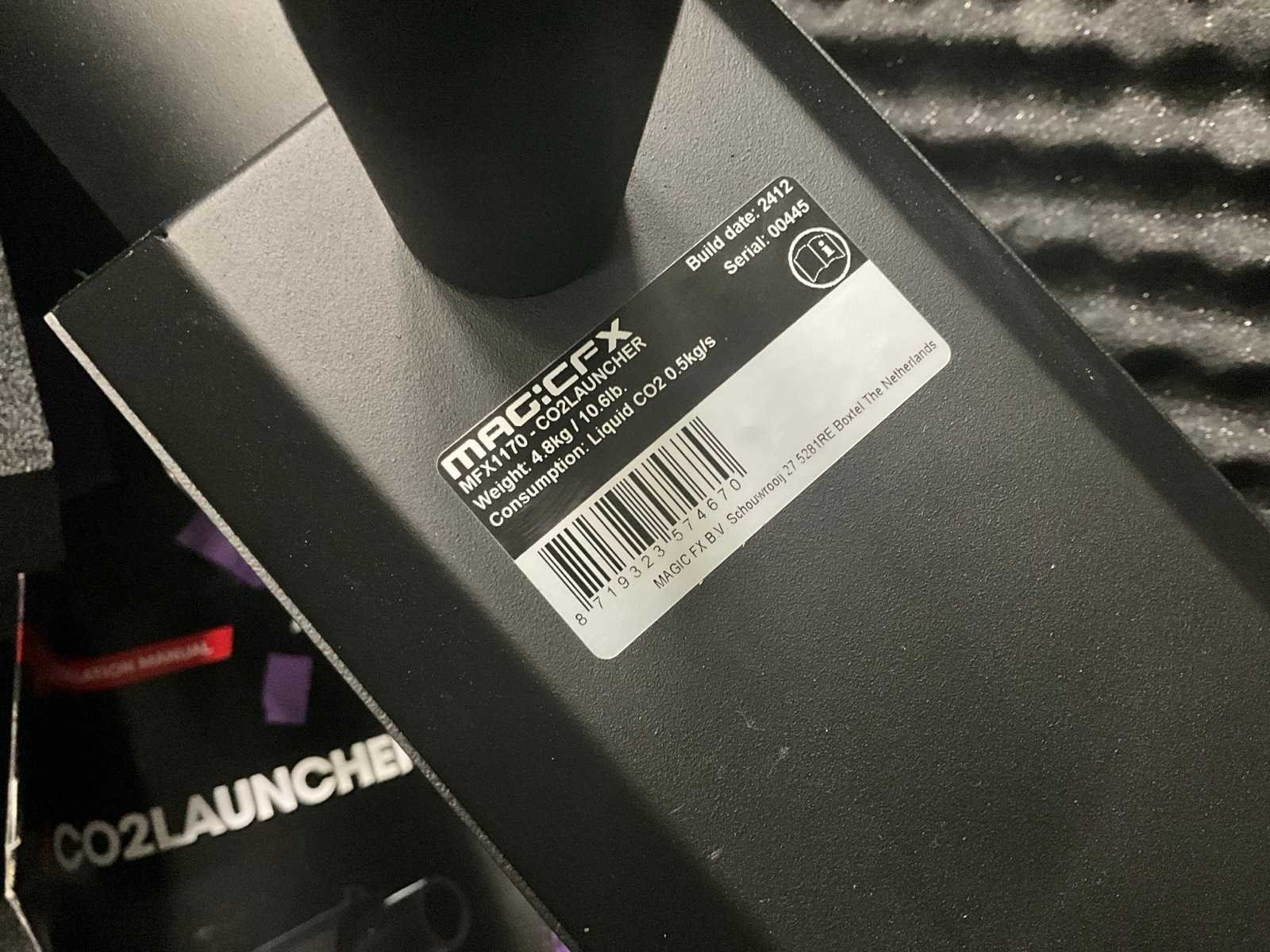 Voorzien van opbergkoffer Merk: MagicFX Type: CO2 launcher MFX1170 Bouwjaar: 2024 Eigen gewicht: 4.8kg