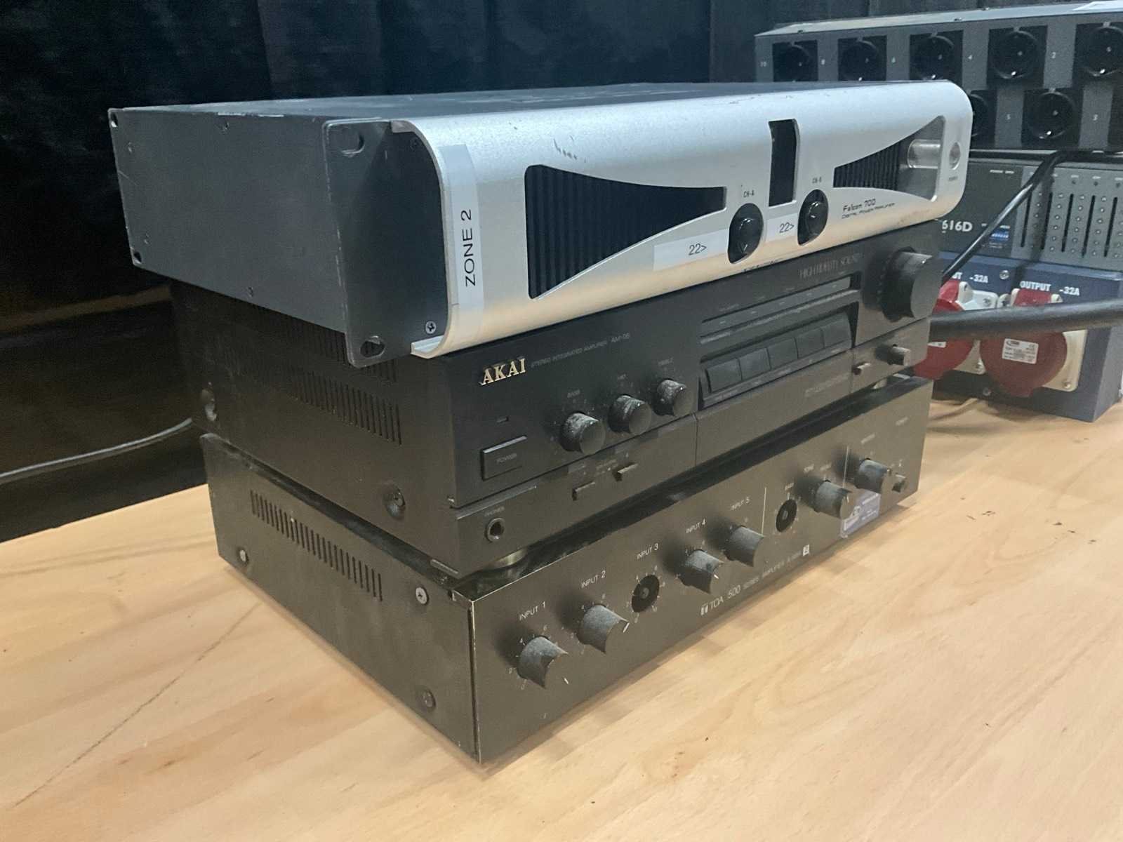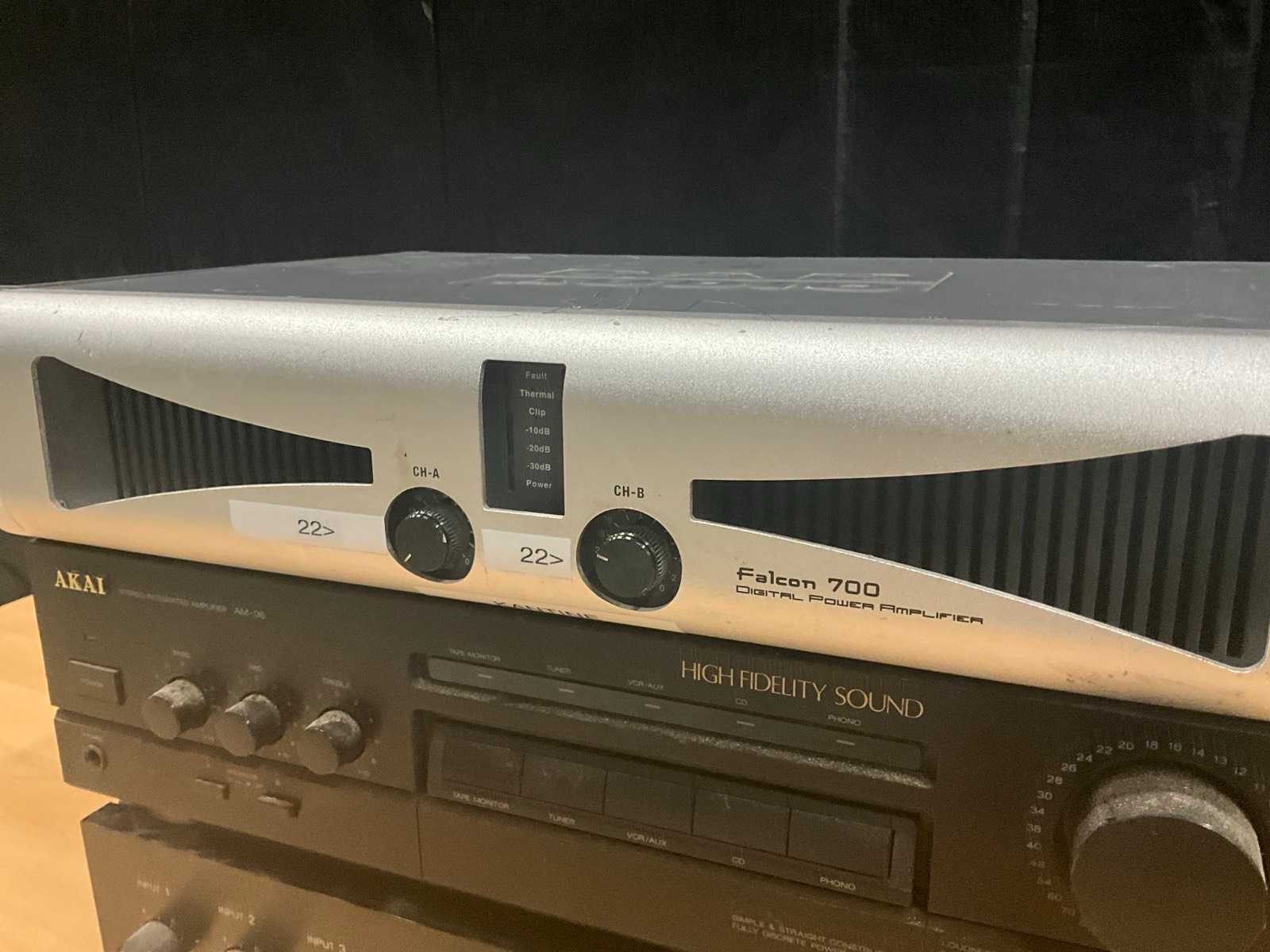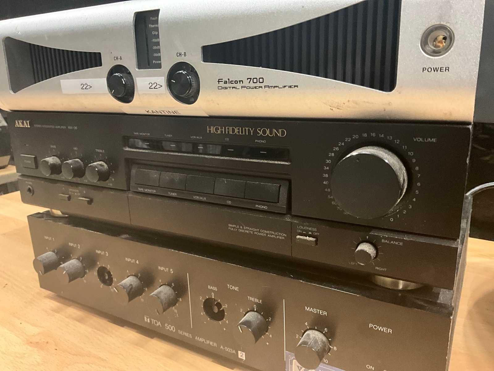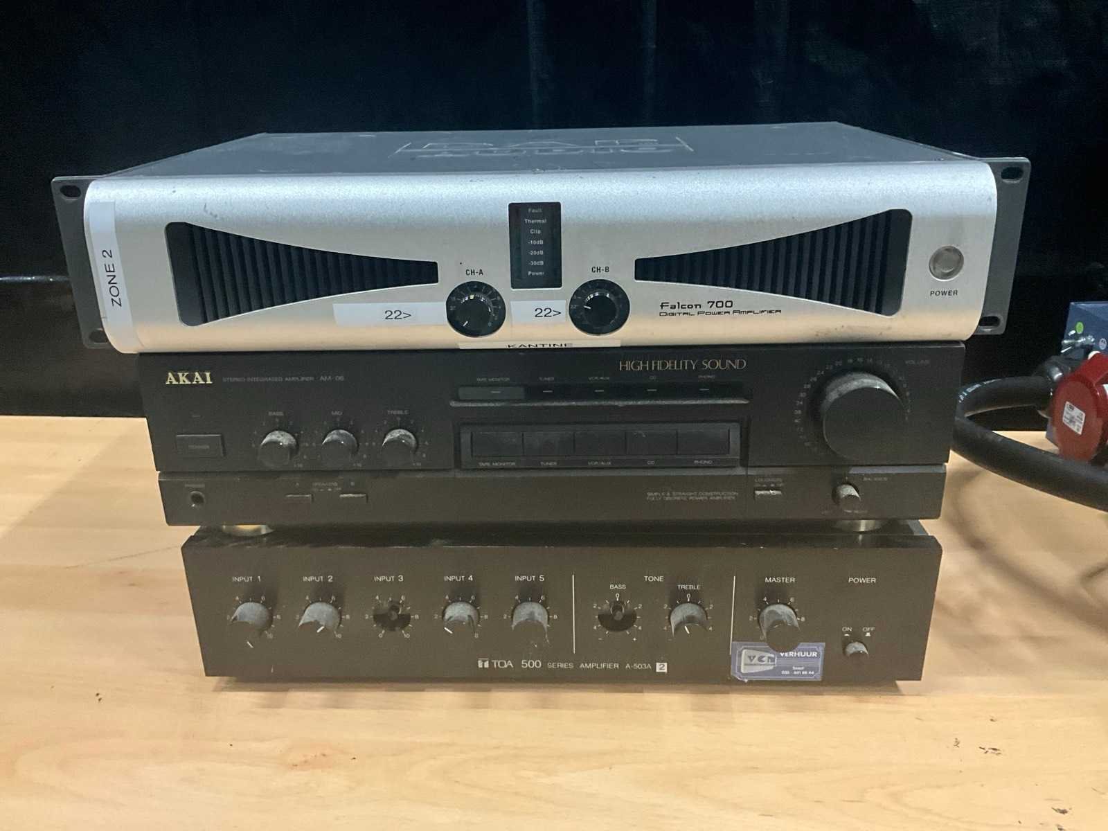 Bestaande uit: Falcon 700 digital power amplifier, Akai AM-06 stereo integrated amplifier en Toa A-503A amplifier; 1x zonder voedingskabel