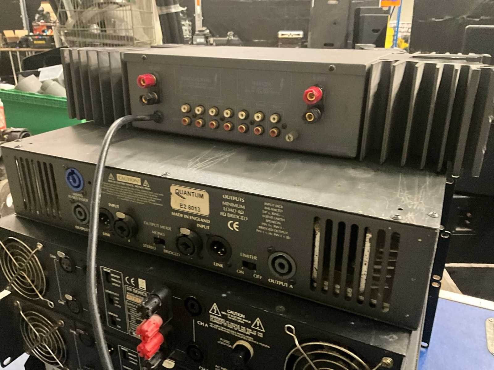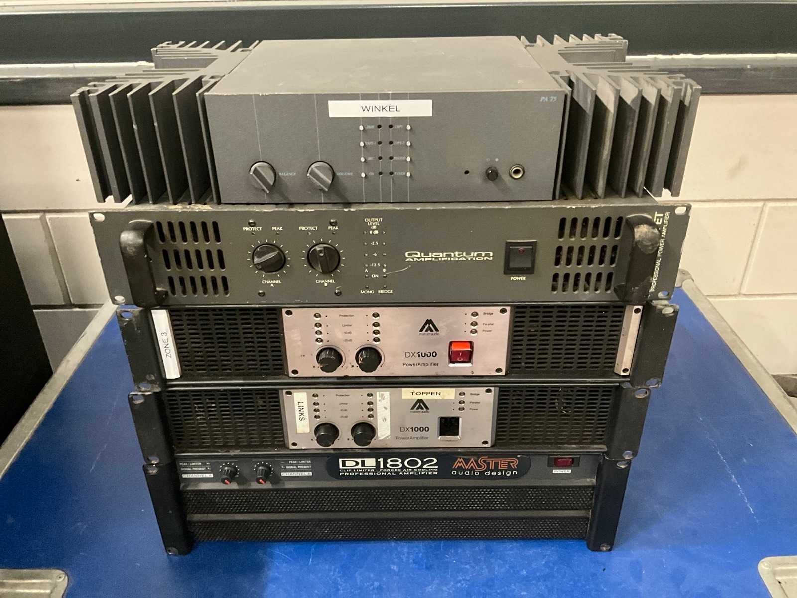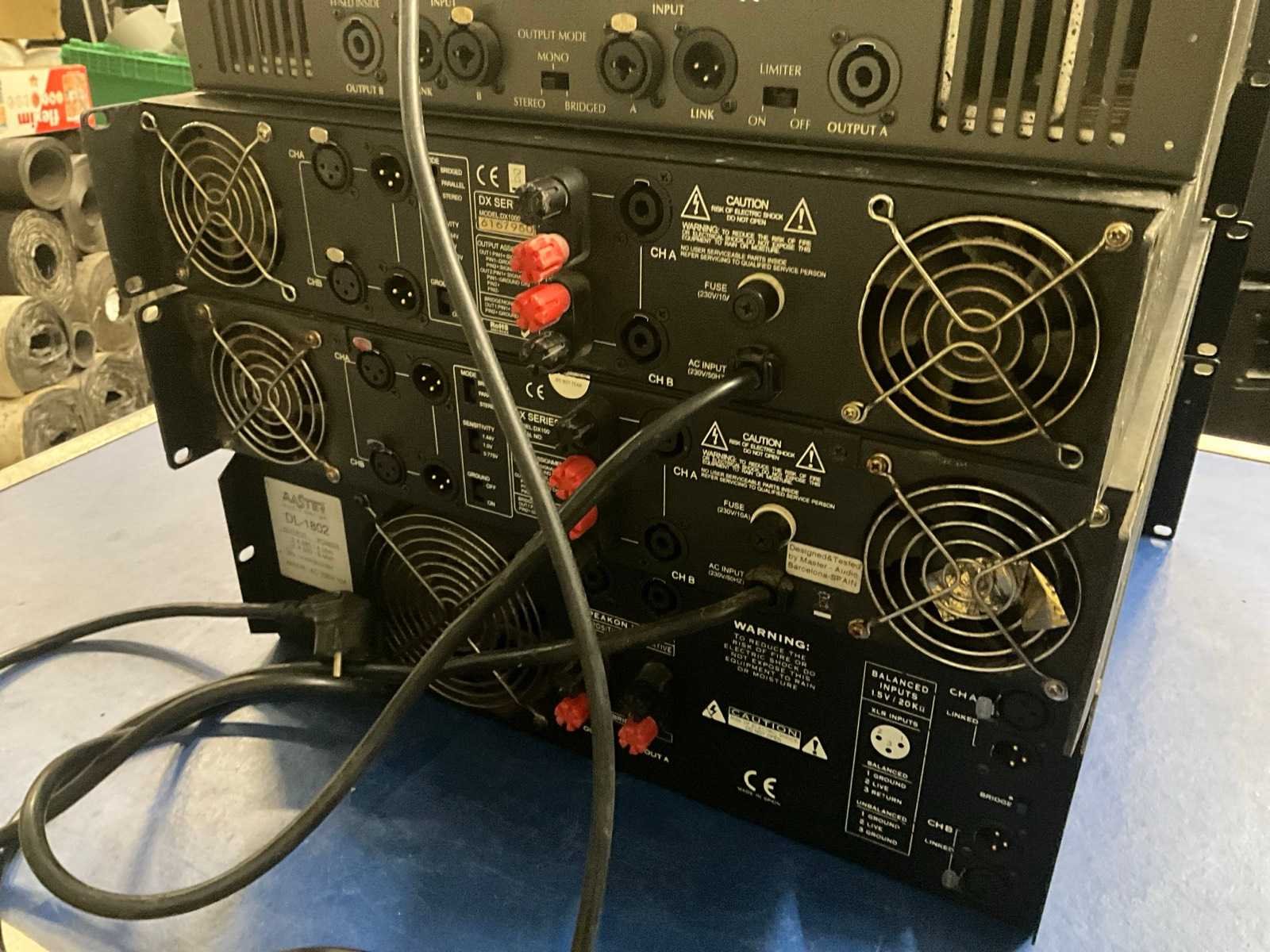 Bestaande uit: Duson PA 75 amplifier, Quantum S1200 amplifier, 2x Master Audio DX1000 amplifier en Master Audio DL1802 amplifier; 2x zonder voedingskabel