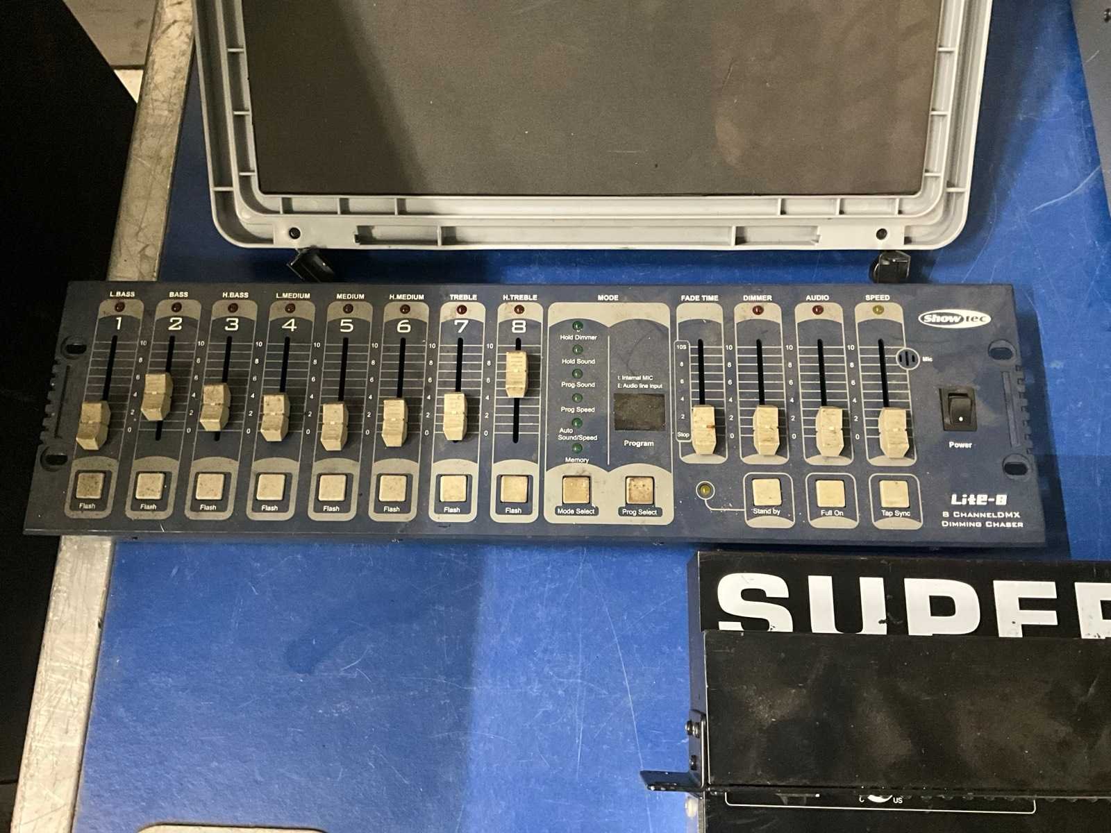 Bestaande uit: DAP Audio GIG-83 CFX mixing console, JBSystems Pro 18X cross fade, Behringer Eurorack MX 802A (defect), Showtec Lite-8 dimming chaser, American Audio Active DBM en Super-X Pro CX2310 cross over