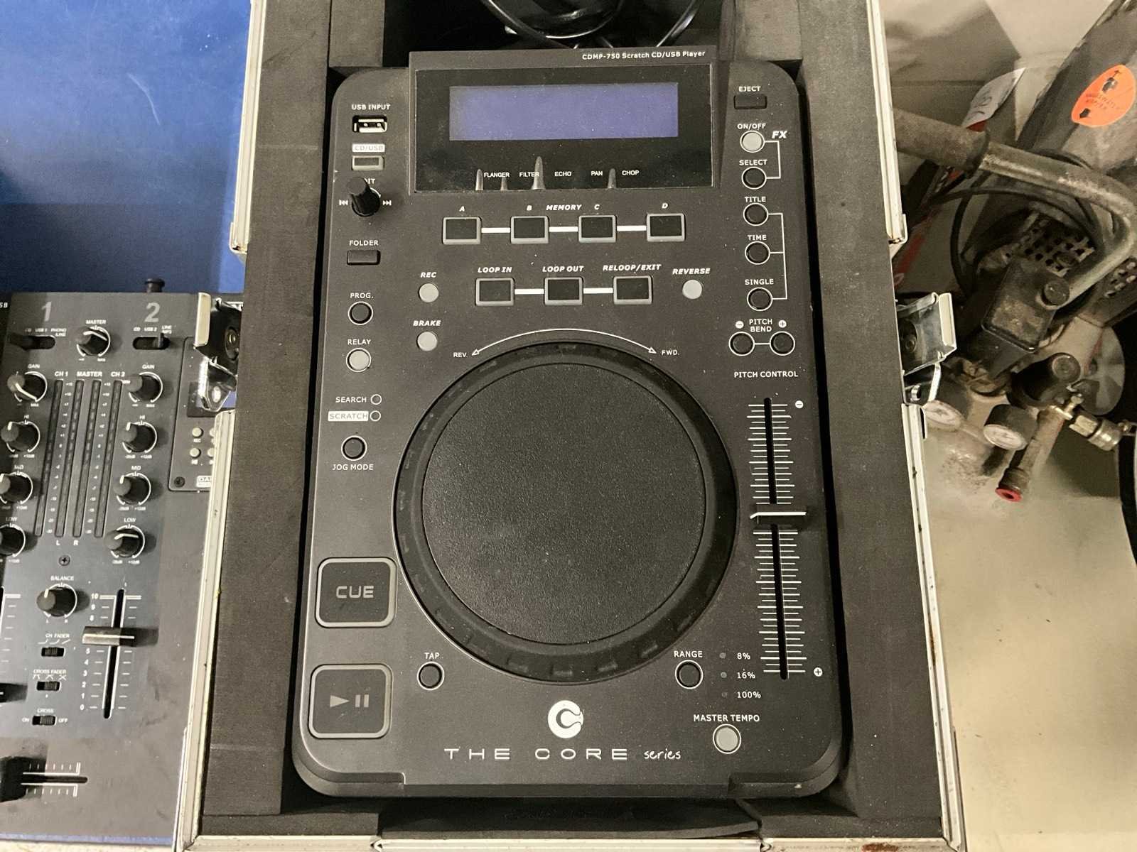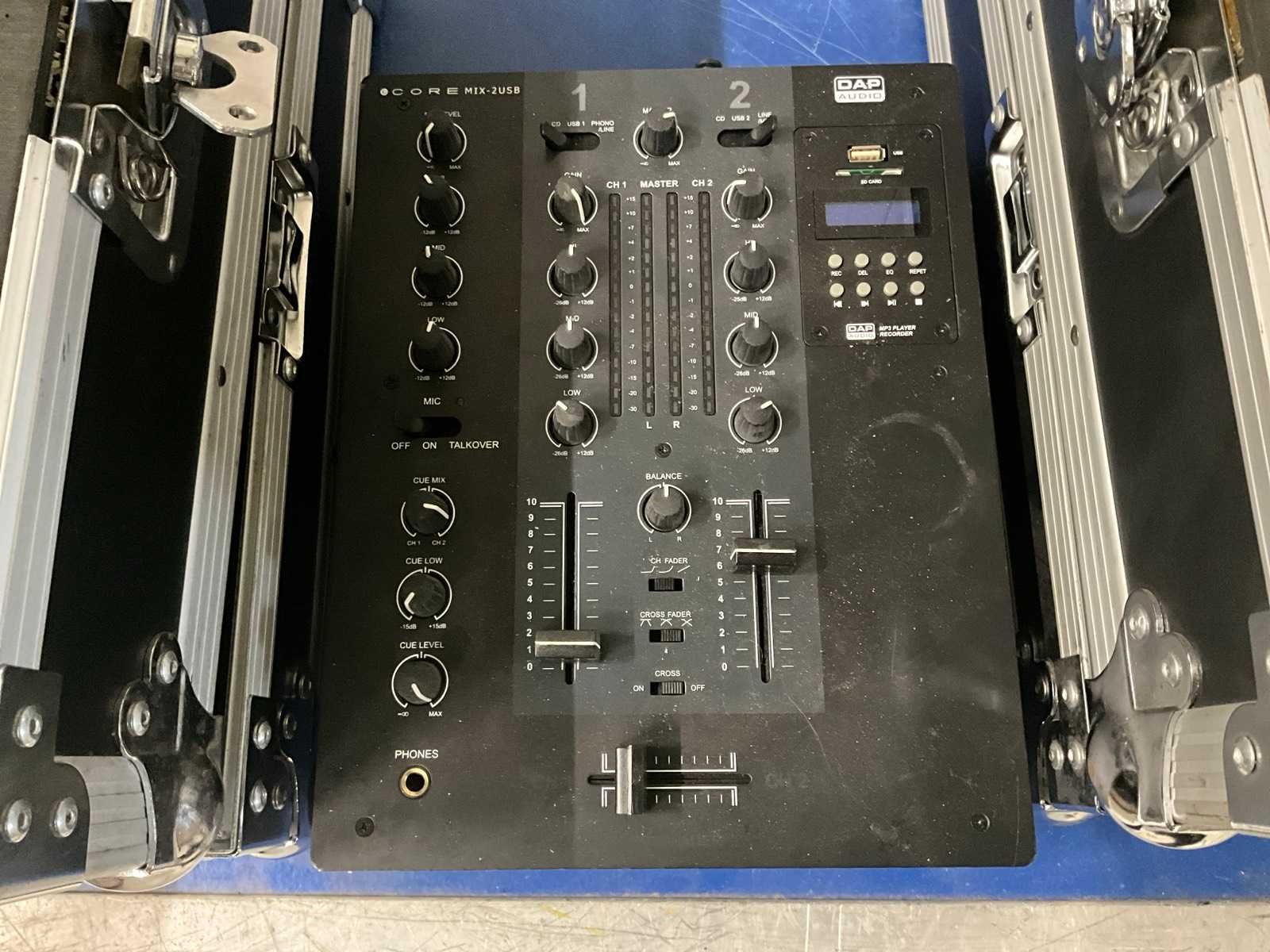 Bestaande uit: 2x DAP Audio The Core Series CDMP-750 CD/USB player in flightcase en 1x DAP Audio Core Mix-2USB Merk: DAP Audio Model: CDMP-750 scratch/Mix-2USB