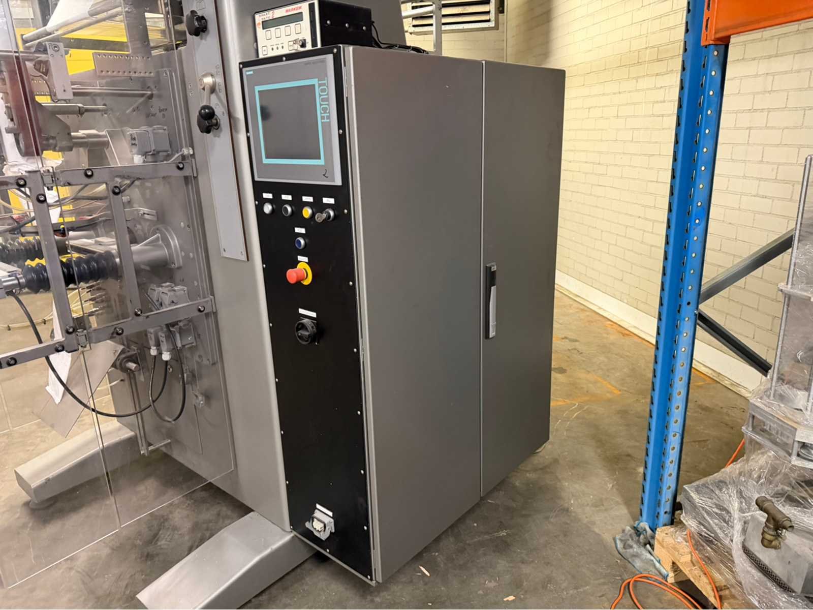 Pulsseal en heatseal; RVS; meerdere formaatsets; voorzien van Siemens Simatic Multi Panel; foliebreedte maximaal: 750mm Merk: Rovema Type: VPM 350 PE/HS Bouwjaar: 2009 Aansluiting: 400V Totale afmeting L: 2400mm Totale afmeting Breedte: 1700mm Totale afmeting Hoogte: 2350mm
