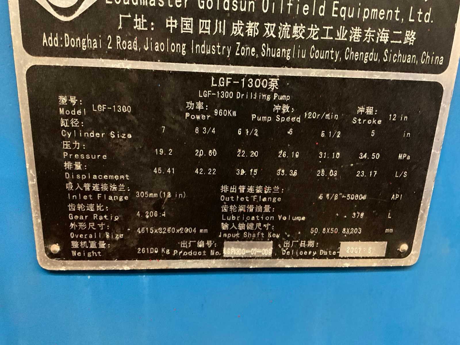 Merk: LGF -130. Bouwjaar: 2007 Aantal cilinders: 3 Eigen gewicht: 26100kg Totale afmeting L: 4600mm Totale afmeting Breedte: 3260mm Totale afmeting Hoogte: 2000mm