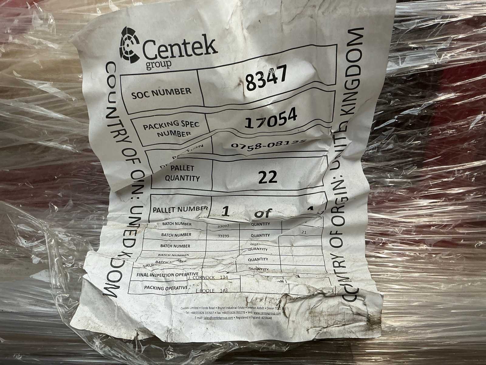 Grote partij onderdelen op 30 pallets; Merk: Centek