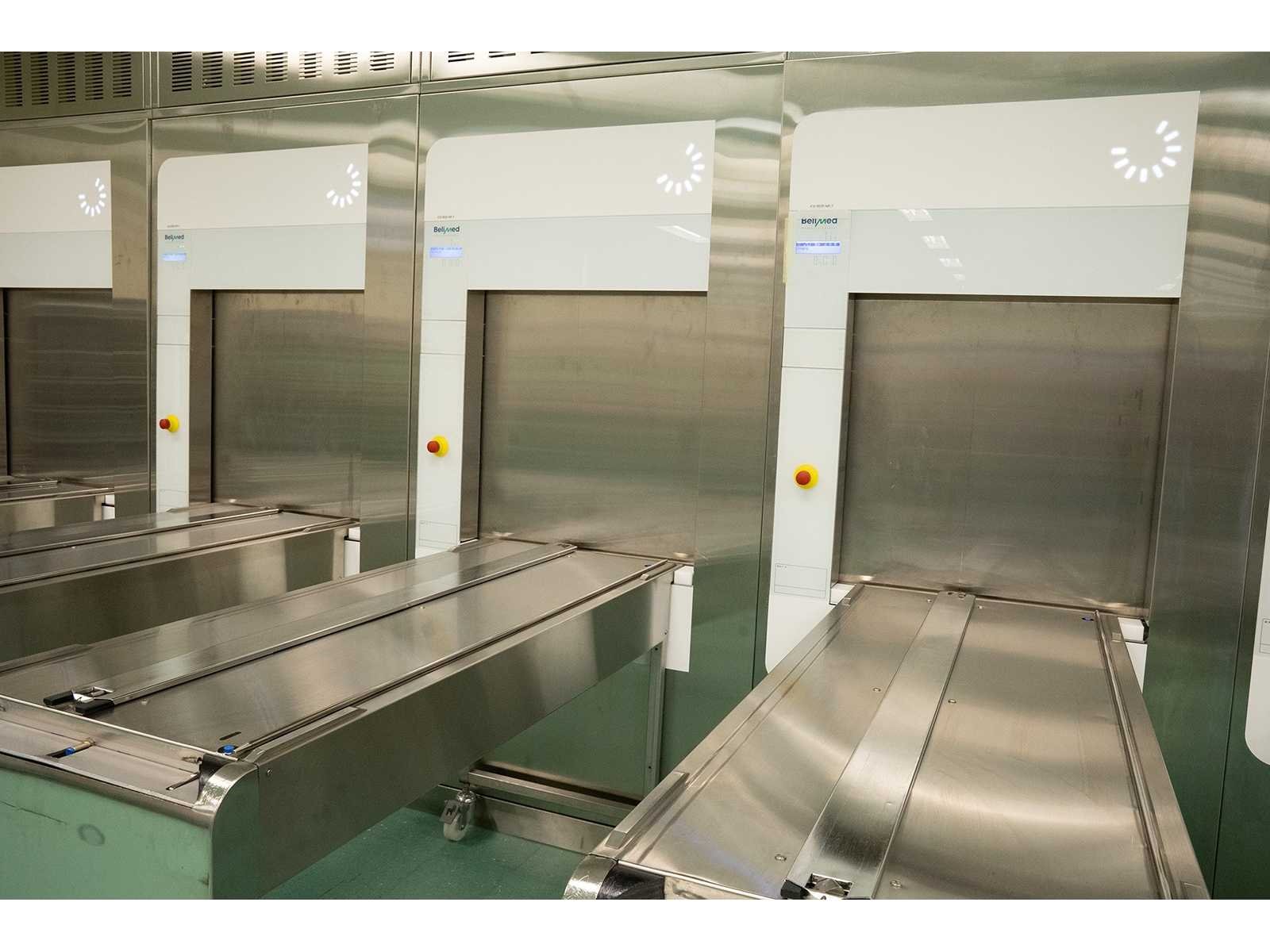 Inclusief: (1x) ontlaadband, (1x) beladingswagen, (1x) ontladingswagen en inzet. Merk: Belimed Type: MST-V 6-6-12 Bouwjaar: 2013 Vloermodel: true Touchscreen bediening: true Digitale besturing: true Aansluiting: 400V Machinegewicht: 1212kg Totale afmeting L: 990mm Totale afmeting Breedte: 1750mm Totale afmeting Hoogte: 1970mm