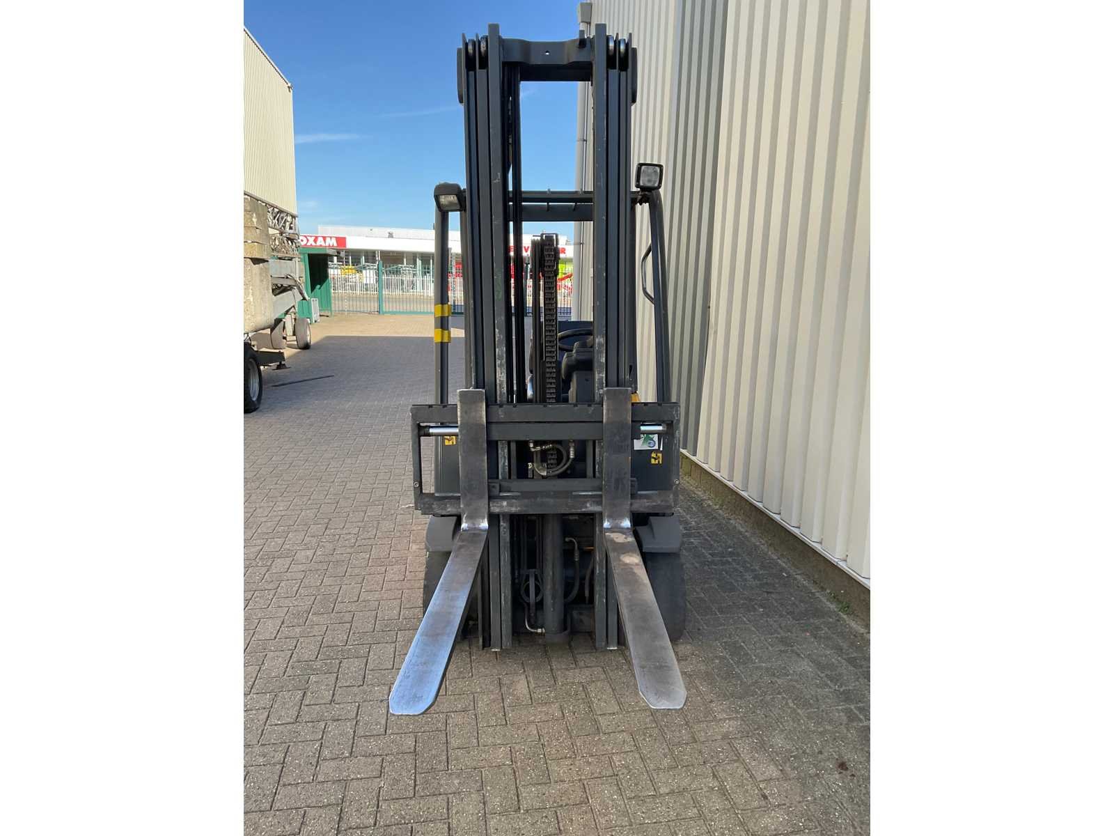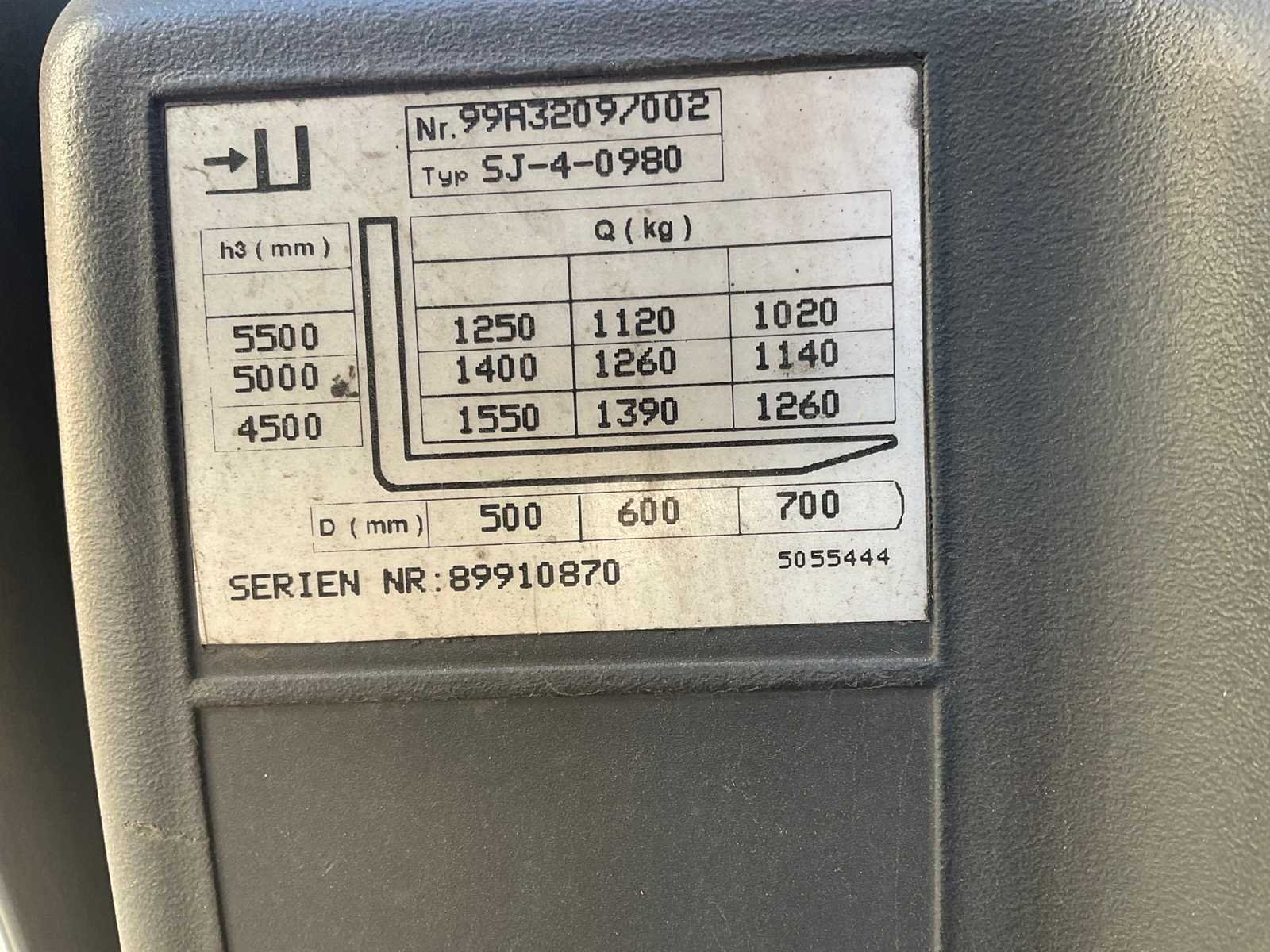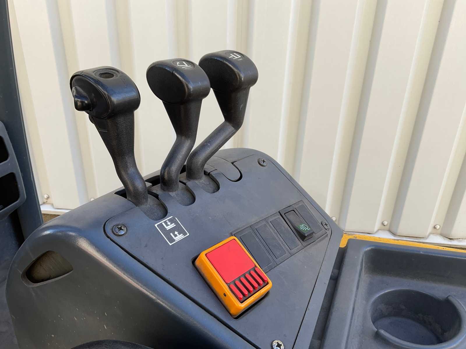 Inclusief lader 380V-48V-125A Merk: Jungheinrich Type: EFG-DF 16 Afgelezen urenstand: 4165 Accu lader: true Free-lift: true Side-shift: true Triple mast: true Hefvermogen: 1600kg Lepellengte: 115mm Max. hefhoogte: 5000mm Vol rubber banden: true Minimale doorrijhoogte: 234mm