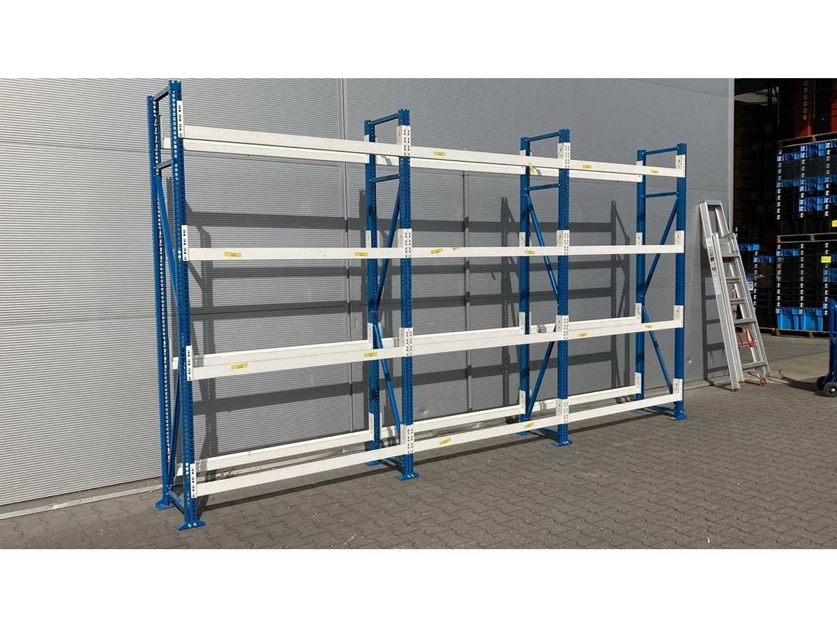 Gebruikt; gedemonteerd; compact verpakt; 5x staander 2500x500mm; 32x ligger 1400mm; 7685*5/7688*32 Merk: Nedcon Aantal secties: 4 Sectie afm. b: 1400mm Sectie diepte: 500mm Sectie afm. h: 2500mm Aantal staanders: 5 Aantal liggers: 32