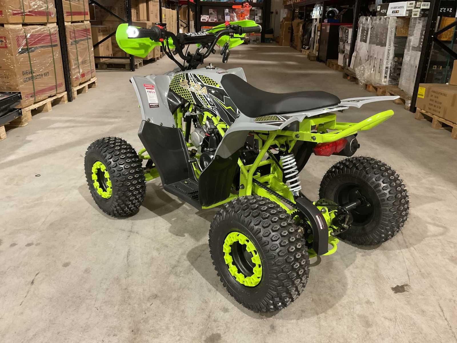 Voorzien van elektrische start; 4 takt; 125 cc; hydraulische schijfremmen; bandenmaat 7” inch; 2 sleutels; ongebruikt in krat (transport afmetingen 130x80x70 cm 91kg) Merk: Ultra Motocross Model: ATV05 (7inch) Product type: ATX 125 Revolt GR Gewicht: 83kg Transmissie: Semi automaat Bouwjaar: 2025 Vermogen (pk): 9hp Cilinderinhoud: 125cc Kleur: Groen