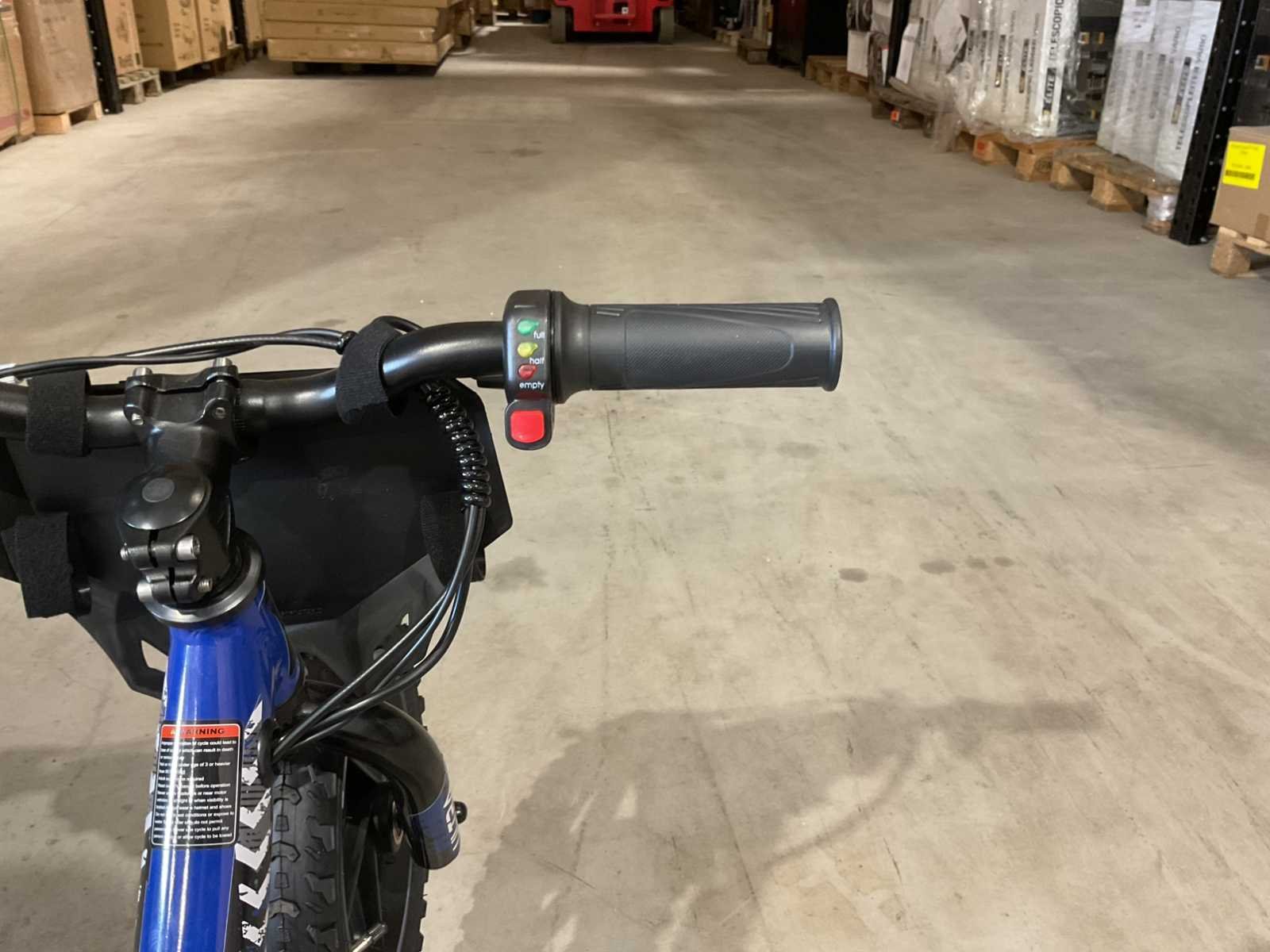 Voorzien van 200W elektrische motor; 2 verschillende snelheden; verstelbaar zadel; verwijderbare accu; bandenmaat 12” inch; ongebruikt in doos (transport afmetingen 90x25x45 cm) Merk: Ultra Motocross Product type: TRX200 BL Kleur: Blauw Gewicht: 10kg Lengte: 90cm Breedte: 25cm Hoogte: 45cm