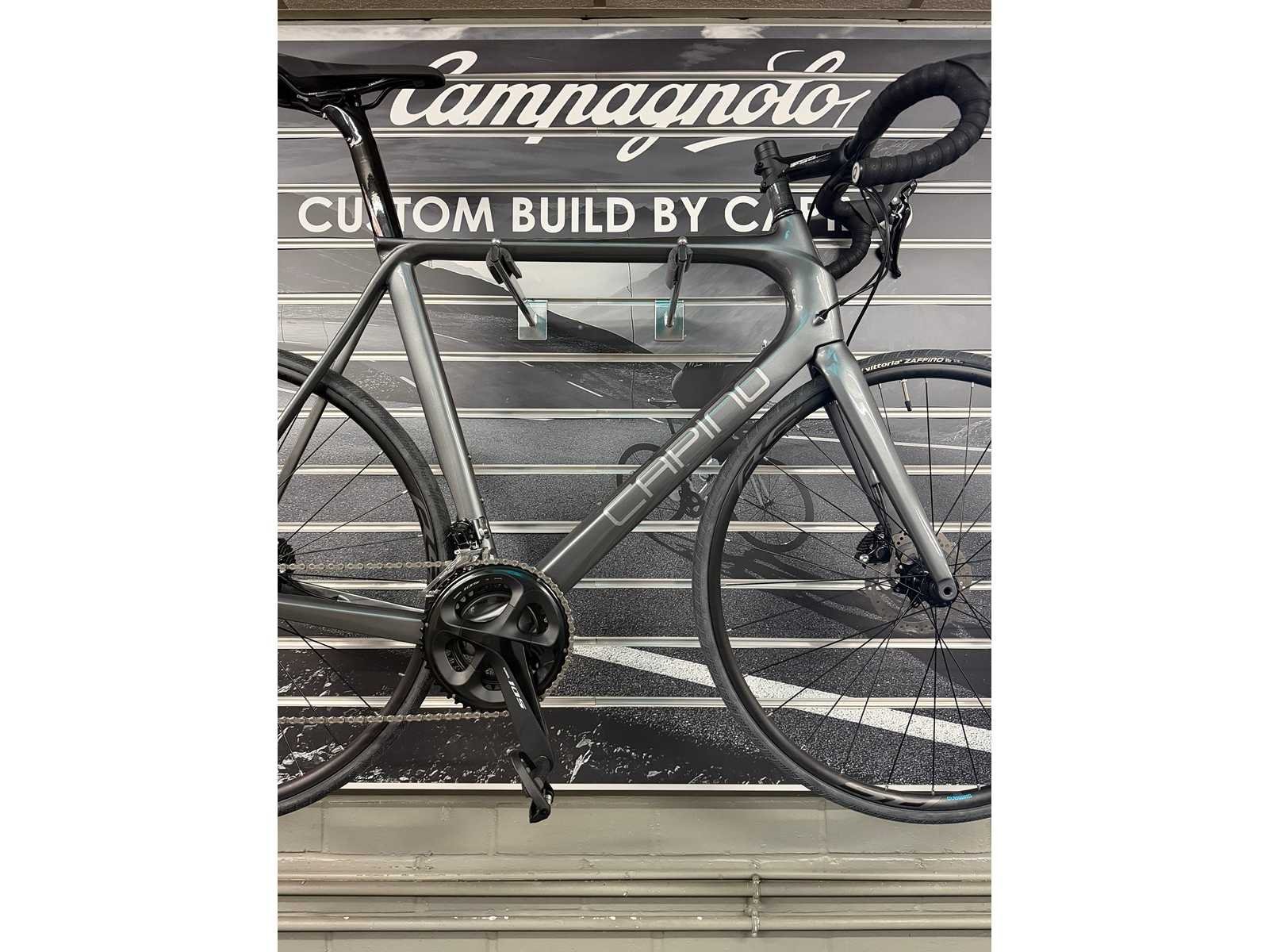 Capino racefiets UD carbon frame en afmontage Shimano 105 Disc mechanisch 11-speed en Shimano wielset alu. Merk: Capino Montage: Shimano 105 Disc mechanisch 11-speed en Shimano wielset alu