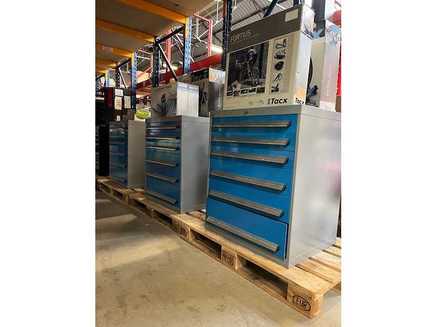 Let op: 2 kasten met sleutel (open) 1 kast zonder sleutel (op slot) De kavel bevat alleen de gereedschapskasten, overige items op afbeeldingen zijn niet inbegrepen. Totale afmeting L: 750mm Totale afmeting Breedte: 600mm Totale afmeting Hoogte: 900mm