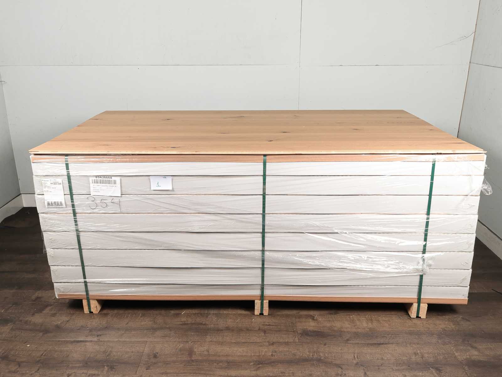 Gemakkelijk te leggen wegens 5G clicksysteem, geschikt voor alle soorten vloer en koelverwarmingen, kwaliteits parketvloer, vloer is van hoogwaardig Europees eiken hout, kant en klaar behandeld, dikte 14 mm, toplaag 3 mm, 39 pakken a 3,18 m2 Within 14 days Merk: Ambiance Product type: Parket Oppervlakte: 124m² Geschikt voor vloerverwarming: Ja V-groef: Ja Afwerking: Geolied, geoxideerd, geborsteld, met v-groef Aantal m² per verpakking: 3.18m² Kleur: Light smoked effect 354 Gewicht: 1015kg Lengte: 2200mm Breedte: 207mm Materiaal: Eiken multiplank