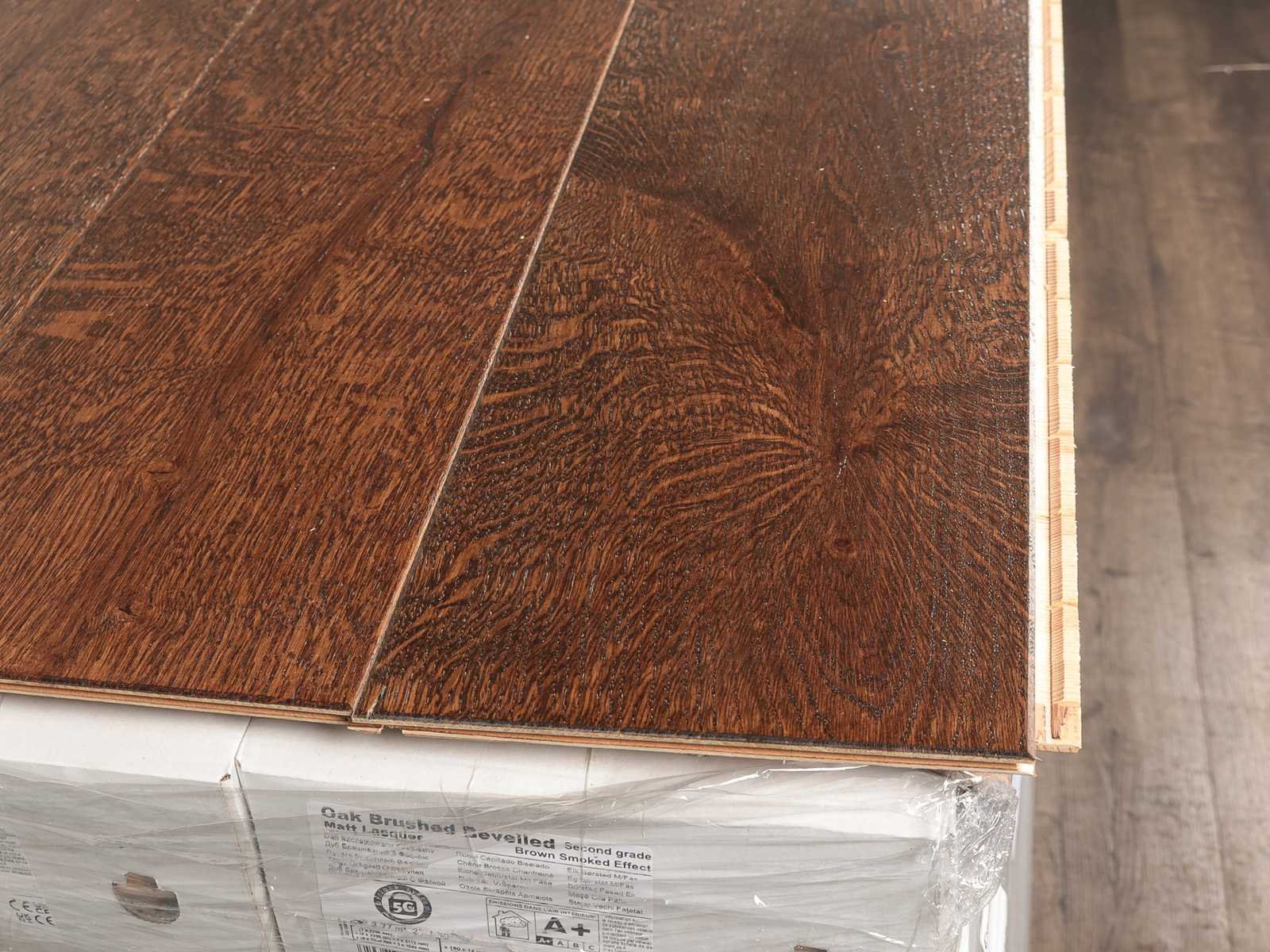 Gemakkelijk te leggen wegens 5G clicksysteem, geschikt voor alle soorten vloer en koelverwarmingen, kwaliteits parketvloer, vloer is van hoogwaardig Europees eiken hout, kant en klaar behandeld, dikte 14 mm, toplaag 3 mm, 39 pakken a 2,77 m2 Within 14 days Merk: Ambiance Product type: Parket Oppervlakte: 108m² Geschikt voor vloerverwarming: Ja V-groef: Ja Afwerking: Mat gelakt, geborsteld, met v-groef Aantal m² per verpakking: 2.77m² Kleur: Brown smoked effect 270 Gewicht: 900kg Lengte: 2200mm Breedte: 180mm Materiaal: Eiken multiplank
