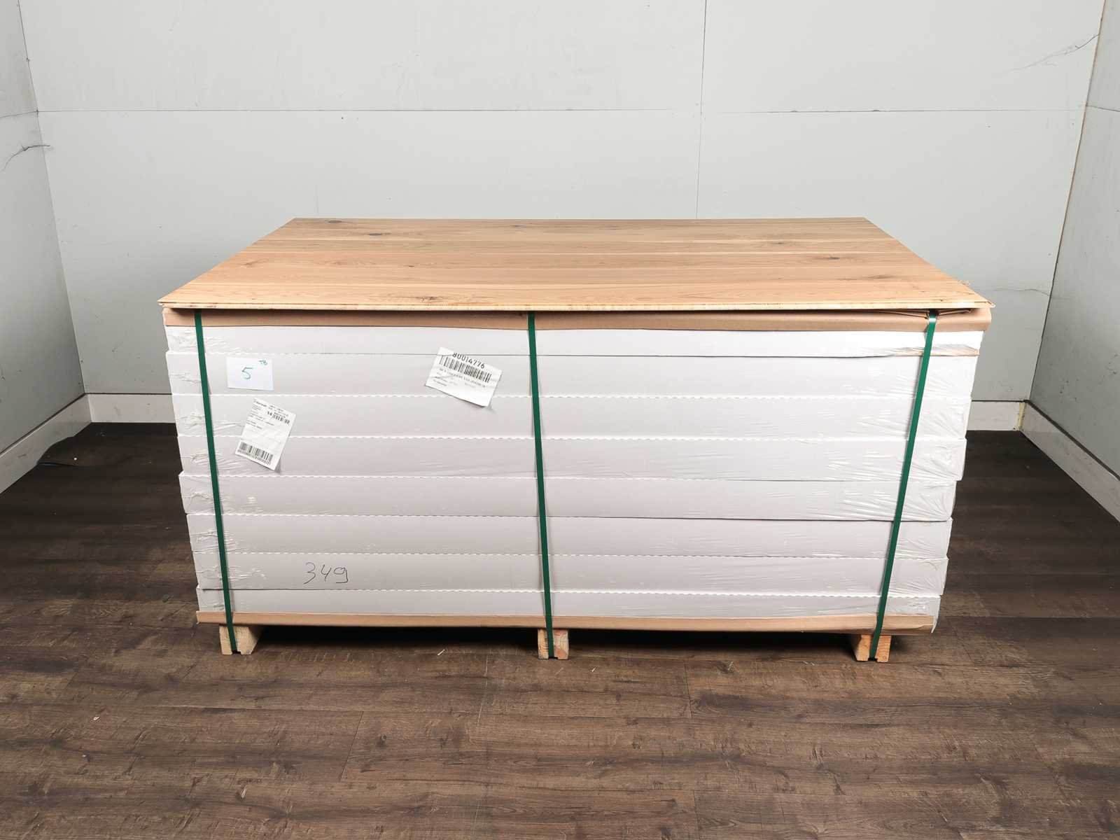 Gemakkelijk te leggen wegens 5G clicksysteem, geschikt voor alle soorten vloer en koelverwarmingen, kwaliteits parketvloer, vloer is van hoogwaardig Europees eiken hout, kant en klaar behandeld, dikte 14 mm, toplaag 3 mm, 39 pakken a 2,26 m2 Within 14 days Merk: Ambiance Product type: Parket Oppervlakte: 88m² Geschikt voor vloerverwarming: Ja V-groef: Ja Afwerking: Mat gelakt, voelbaar structuur, met v-groef Aantal m² per verpakking: 2.26m² Kleur: Traditional oak 349 Gewicht: 750kg Lengte: 1800mm Breedte: 180mm Materiaal: Eiken multiplank